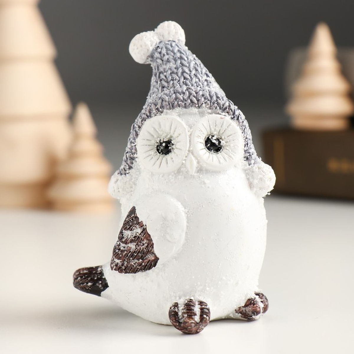 Сувенир полистоун Белый филин в шапке-колпаке с посыпкой 5,8х5х8,2см 9491450