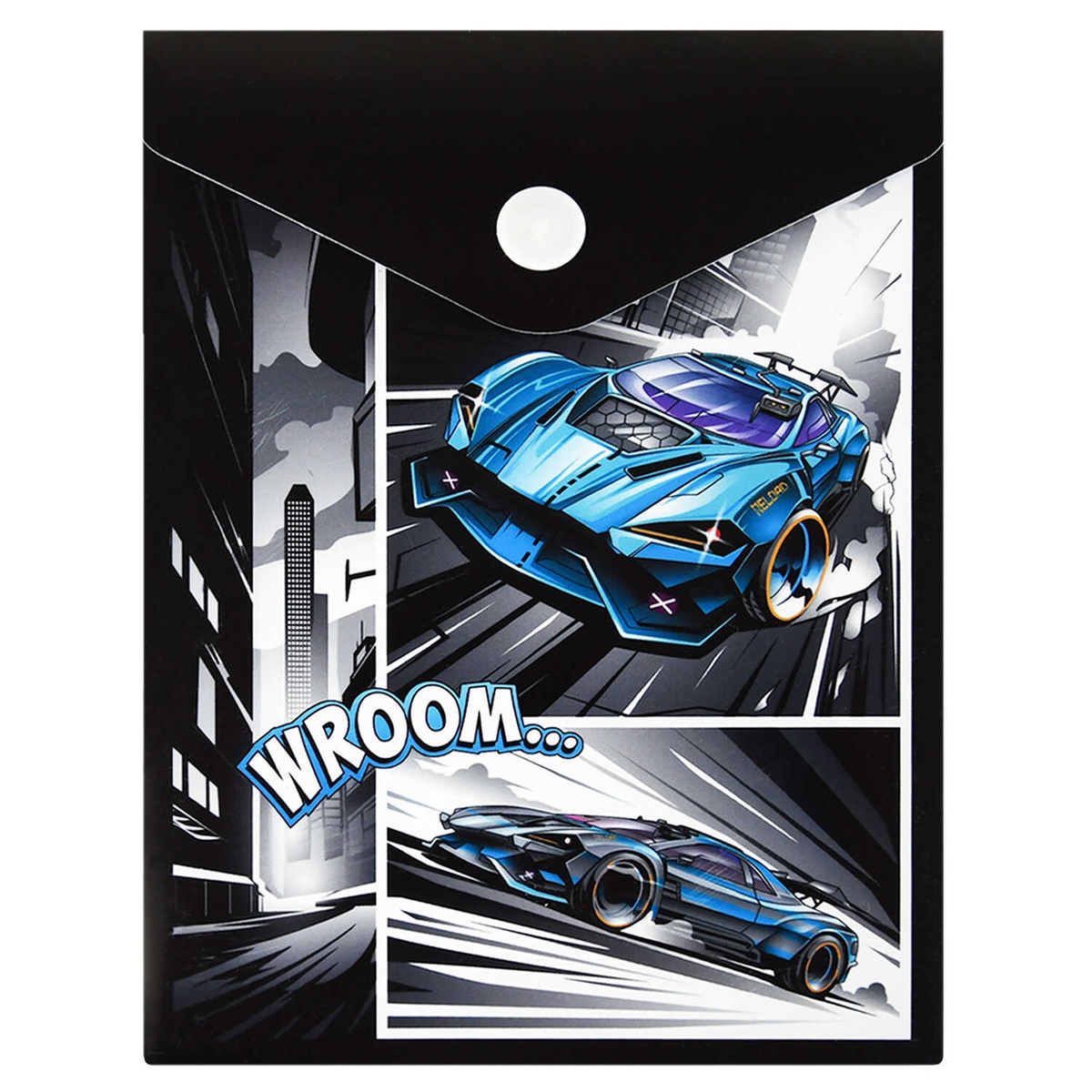 Папка на кнопке А6 пластик Гонки 15.8х11.4см 180мкм 69031