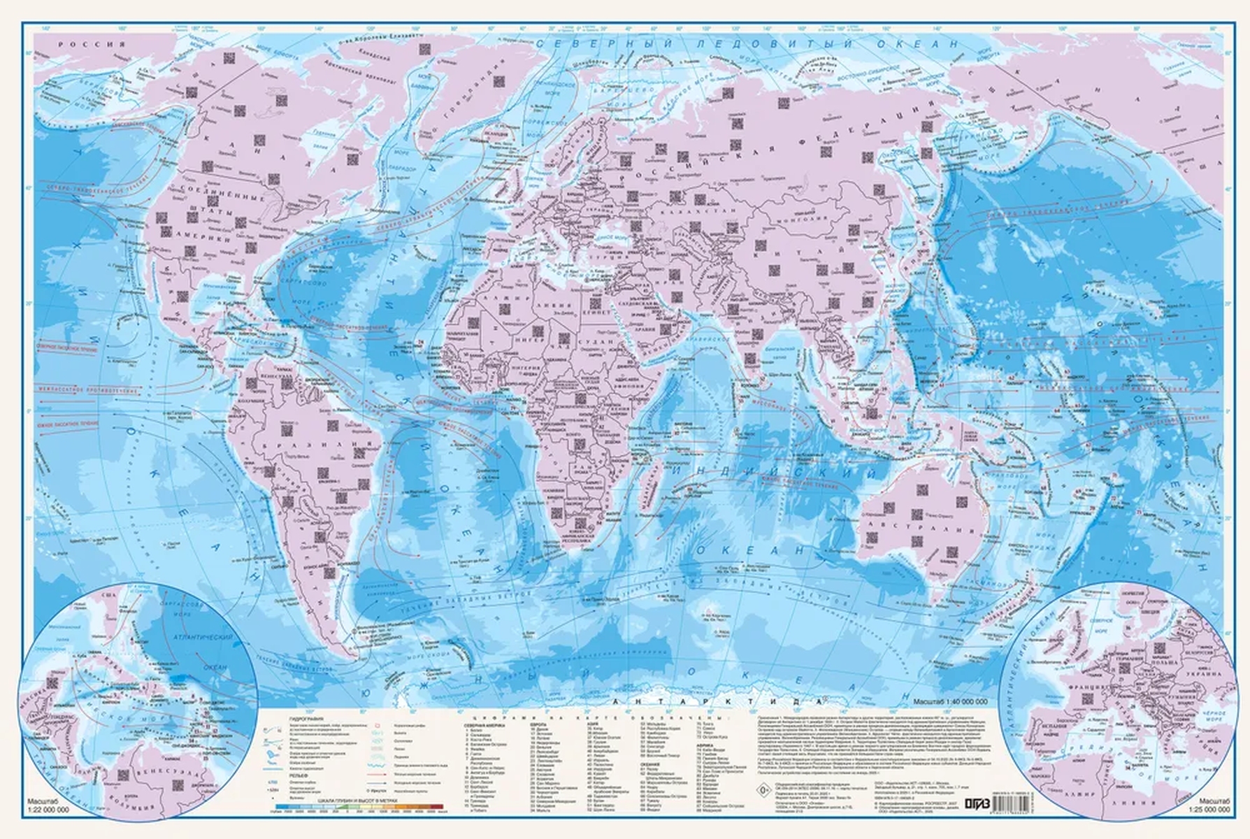 Скретч-карта мира 87х58 см на стену в ПВХ-тубусе – подарочный географический постер со стираемым слоем. На стираемом покрытии серебристого цвета отображены границы. Также даны QR-коды, позволяющие с помощью вашего смартфона или планшета, имеющего выход в интернет, быстро перейти на страницы самых популярных заповедников и национальных парков. Узнавай новое, выбирай, куда спланировать следующее путешествие, сделай шаг в сторону новых открытий. Владелец этой карты сможет побыть в роли исследователя – под стираемым слоем на физической карте с помощью цветовой шкалы высот наглядно отражено чередование различных типов и форм рельефа. Отметки высот показывают вершины основных горных систем. Достаточно подробно даны объекты гидрографии (реки, болота, озёра, водохранилища) и их названия. В океанах показаны тёплые и холодные течения. Физическая карта мира составлена профессиональными картографами, отображенная информация позволяет верно представить территории стран. Эта карта станет оригинальным подарком на Новый год, 23 февраля или 8 марта студенту, школьнику, интересующемуся географией или любителю путешествий.