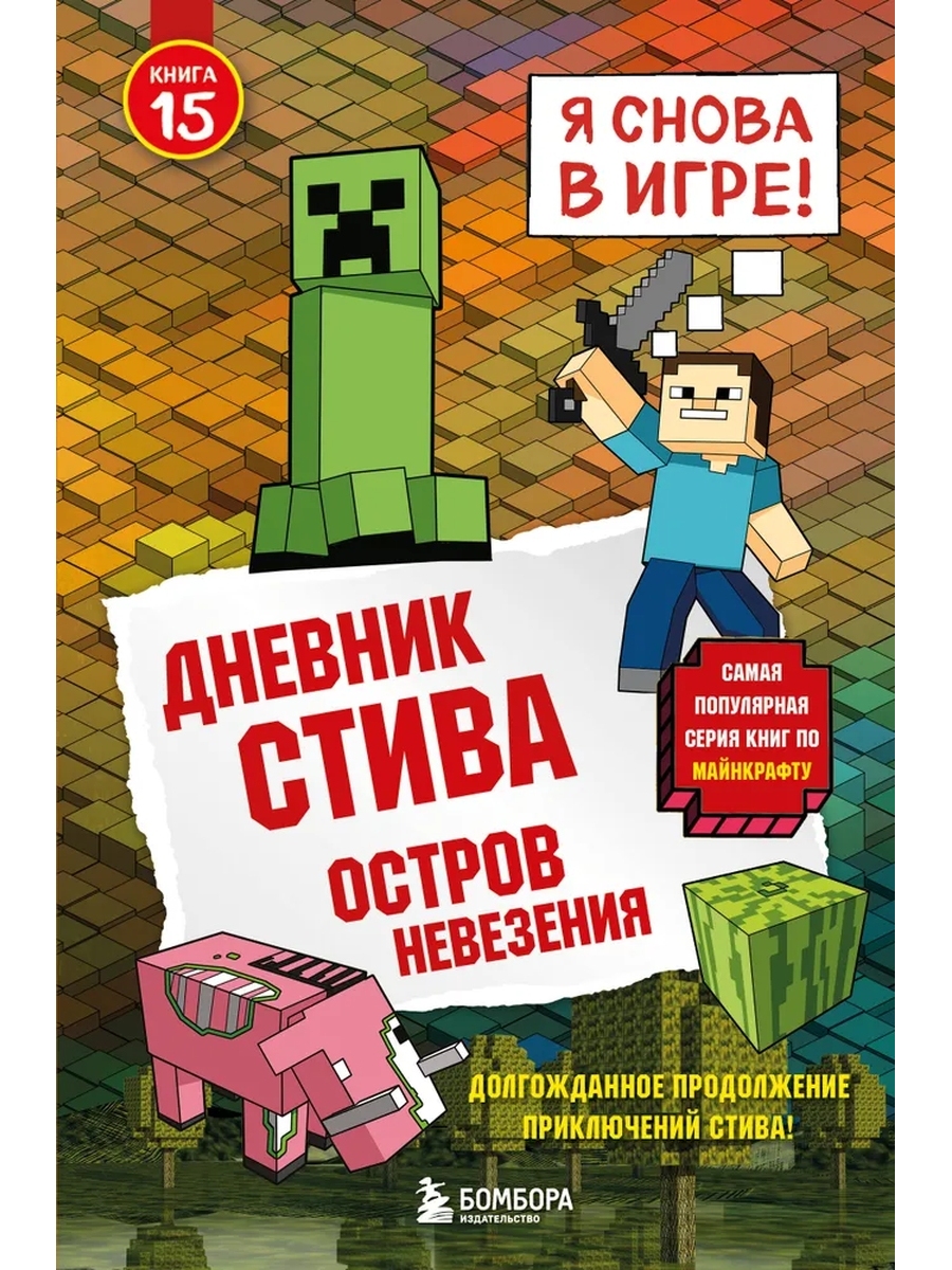 Вау, я снова в игре! Лучше начну с самого начала… Помните Дирка, с которым я даже успел подружиться? Так вот, он всё такой же задира! Из-за спора с ним я СНОВА оказался в «Майнкрафте» и должен доказать, что я не какой-то там нуб и много чего знаю и умею в игре. Чтобы доказать свою правоту, я должен пройти сложные испытания в игре: встреча с враждебным ЗОГЛИНОМ (почему-то он не захотел стать моим лучшим другом, а я ведь ему помочь пытался!), а ещё морское путешествие в поисках КНИГИ, которая поможет мне вернуться домой. Но не буду забегать вперёд… вспомнить бы, как всё крафтить! Уж это мне очень пригодится, чтобы поскорее оказаться дома и утереть нос вредному Дирку! Читайте в серии: 1. «Дневник Стива, застрявшего в Minecraft» 2. «Дневник Стива. Конёк-квадратноног» 3. «Дневник Стива. Собачья жизнь» 4. «Дневник Стива. Оцелот на оцелоте» 5. «Дневник Стива. Ушастая угроза» 6. «Дневник Стива. Секретные МУ-Утериалы» 7. «Дневник Стива. Стив, колдунья и наковальни» 8. «Дневник Стива. Холодные игры» 9. «Дневник Стива. Куда приводит портал» 10. «Дневник Стива. На суше и на море» 11. «Дневник Стива. Дом в тёмном лесу» 12. «Дневник Стива. Куда глаза летят» 13. «Дневник Стива. Визжащий в лабиринте» 14. «Дневник Стива. Крайний том» 15. «Дневник Стива. Остров невезения»