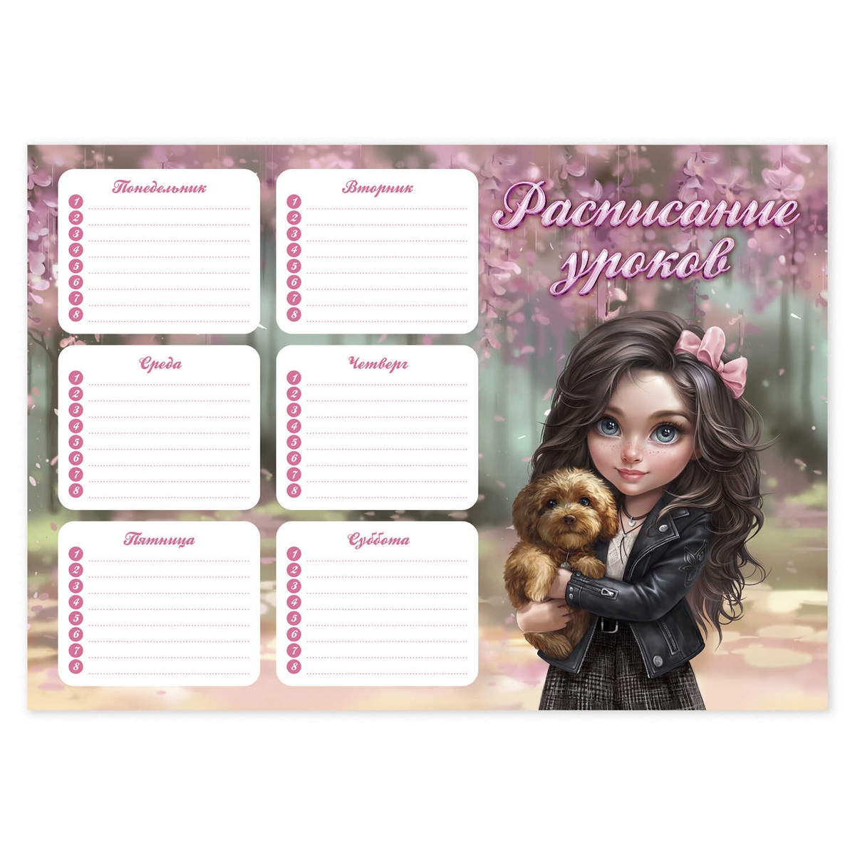 Расписание уроков А4 Брюнетка с собачкой мелован 235 г/м 68852