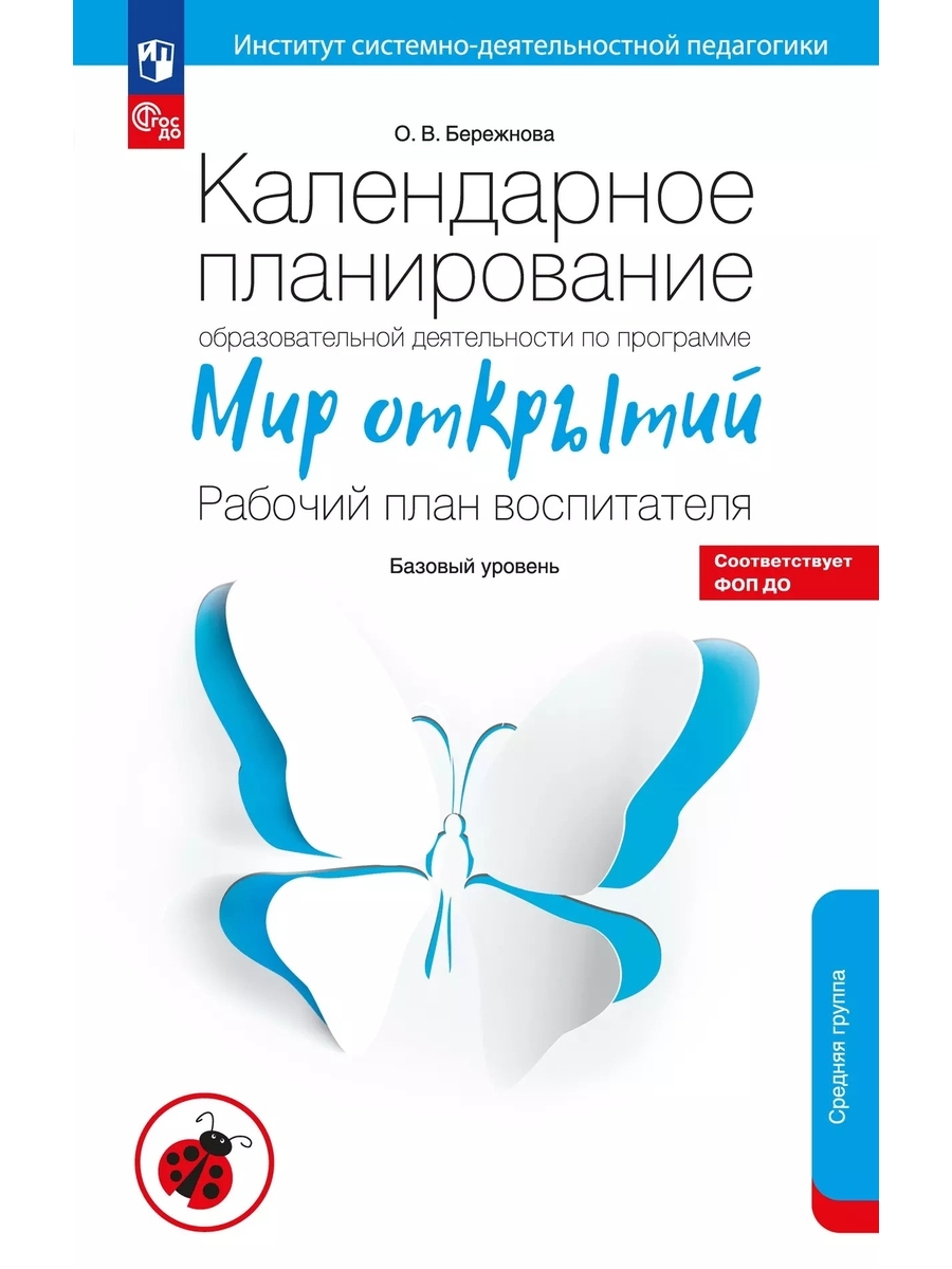 В пособии представлены рабочий план и технология планирования образовательной деятельности воспитателя детского сада в соответствии с концептуальными положениями, целями и задачами комплексной образовательной программы дошкольного образования «Мир открытий» под общей редакцией Л.Г. Петерсон, И.А. Лыковой. В первой части пособия предлагается рабочий план образовательной деятельности воспитателей с детьми средней группы на учебный год (с сентября по май включительно) — непосредственно образовательной де- ятельности и образовательной деятельности в режиме дня. Рабочий план начинается с индивидуального профиля группы (заполняется воспитателями самостоятельно), содержит перспективный (на месяц) и календарный (на неделю и каждый день) модули. Каждый модуль имеет инвариантную и вариативную части, что позволяет воспитателям, с одной стороны, унифицировать процесс планирования образовательной деятельности с детьми, с другой — оперативно вносить в план дополнения и изменения в зависимости от образовательной ситуации в группе, с учетом конкретного контингента детей, их интересов и потребностей. Методические рекомендации, размещенные во второй части пособия, помогут педагогам подойти к процессу планирования системно и комплексно.