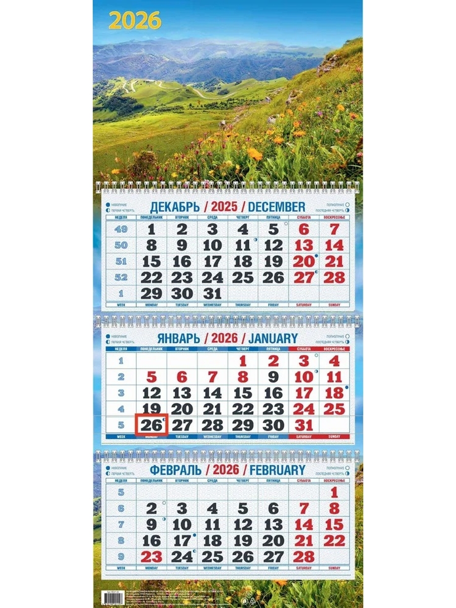 Кал 2026 Кварт 3-х блоч Летний день 310*680