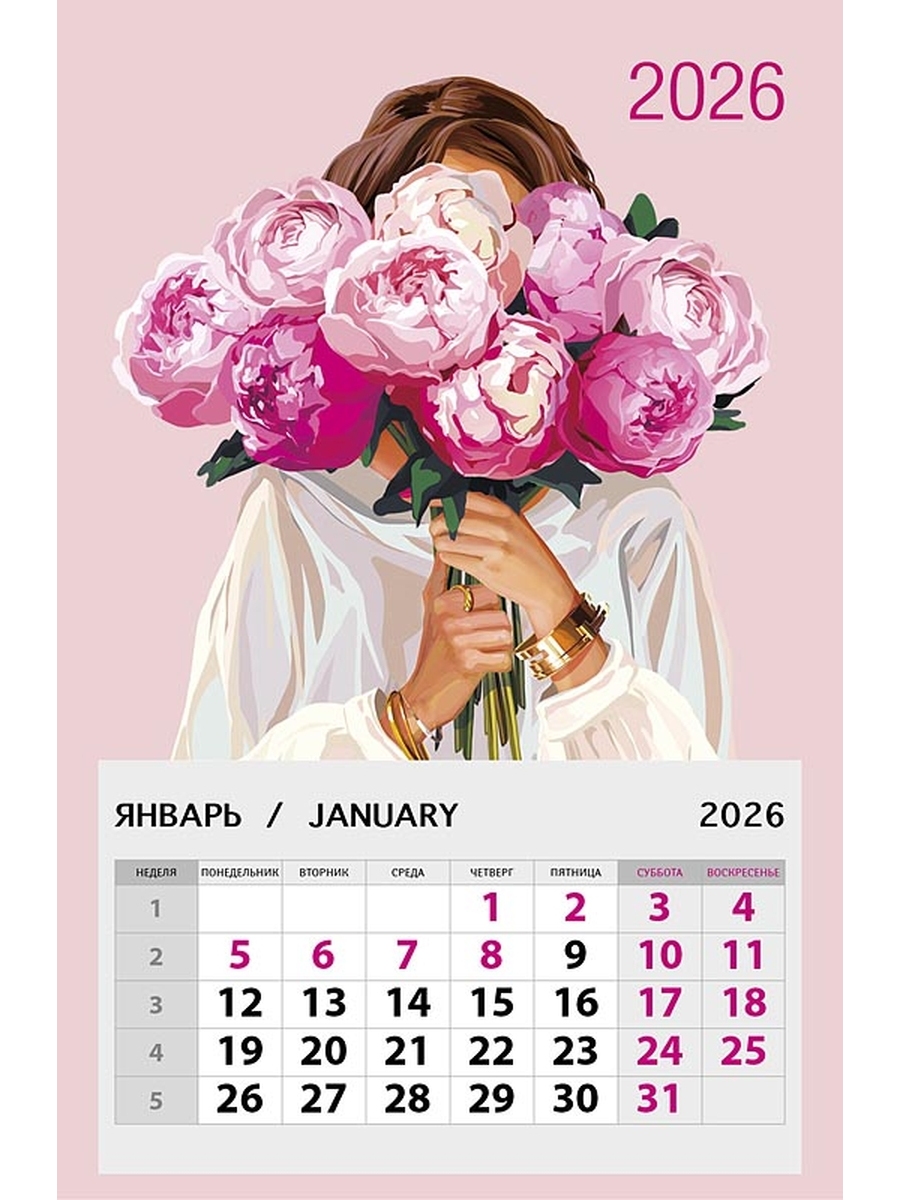 0611.133 Календарь магнитный Девушка с пионами 2026