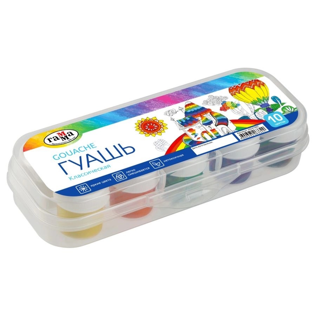 Гуашь 10цв Классическая 17,5мл пластик пенал 20241007