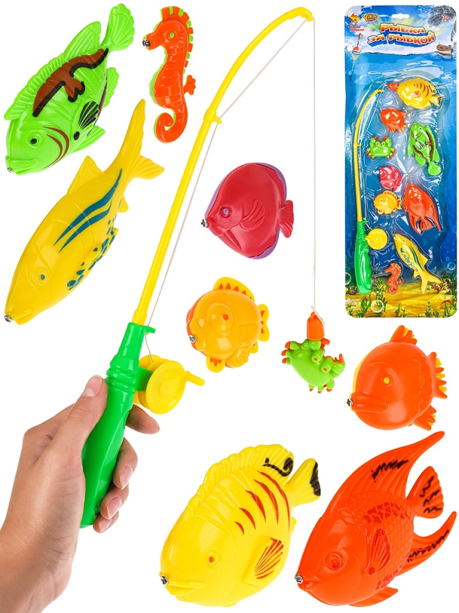 Рыбалка пластиковая 9 рыбок 1 удочка в блистере M1248