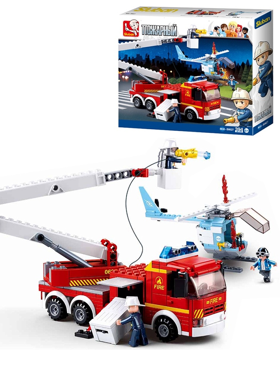 Конструктор пластиковый SLUBAN Пожарные Пожарная машина с вертолетом 394 дет 3 дет M38-B0627