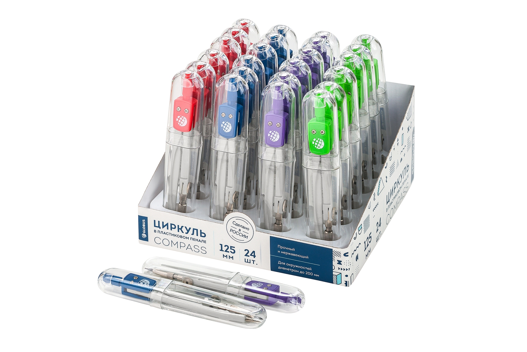Циркуль металлический Школа L-125 мм синий красный зеленый фиолетовый ЦЧП-40