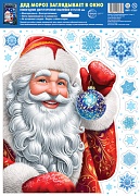 Оформительская наклейка А4 Дед Мороз заглядывает в окно НМТ1-17507