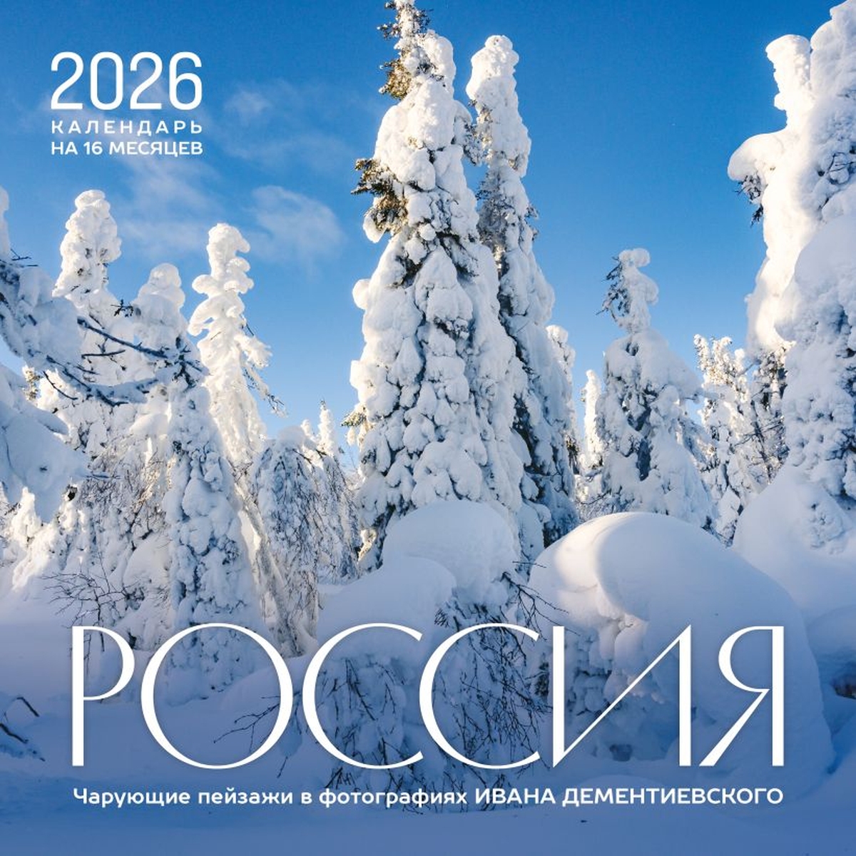 О серии: Наши настенные календари отличаются высоким качеством исполнения! Тщательно подобранные иллюстрации, напечатанные на глянцевой бумаге высочайшего качества, станут настоящим украшением дома, а в календарной сетке найдется место для ваших планов: большие клетки позволят делать записи и организовать свой год! В календаре также отмечены все государственные праздники. В серии настенных календарей издательства «ЭКСМО» каждый найдет тему по вкусу: великие художники, великолепные подборки с самыми знаменитыми произведениями искусства, легендарные кинематографические саги и игры, главные книжные авторы и бестселлеры, фотографии и иллюстрации любимых животных и многое-многое другое! О календаре: В календаре собраны удивительные фотографии самых поэтичных мест России от известного фотографа и путешественника Ивана Дементиевского. Суровая и прекрасная Якутия, заснеженные просторы Ямала, вулканы и туманы Камчатки, скальные каньоны Дагестана, водная стихия Карелии и мягкий свет южного Крыма. Каждое фото — это не просто пейзаж, а живая история. Этот календарь станет окном в невероятные уголки России, в места, где чувствуется настоящая сила природы и дух свободы. Также в календарь включен дополнительный разворот с первыми четырьмя месяцами 2026 года! Для кого: Этот календарь отлично подойдет для тех, кто хочет насладиться красотами нашей страны. Технические параметры: - Тип календаря — настенный перекидной. - Год — 2026. - Календарная сетка — с разбивкой по месяцам. - Вид скрепления — скрепка. - Ширина — 30 см. - Высота — 30 см. - Внутренний блок — мелованная бумага 115 г/м2. - Подложка — плотный гофрокартон для поддержания формы. - Индивидуальная упаковка в плотный целлофановый пакет.