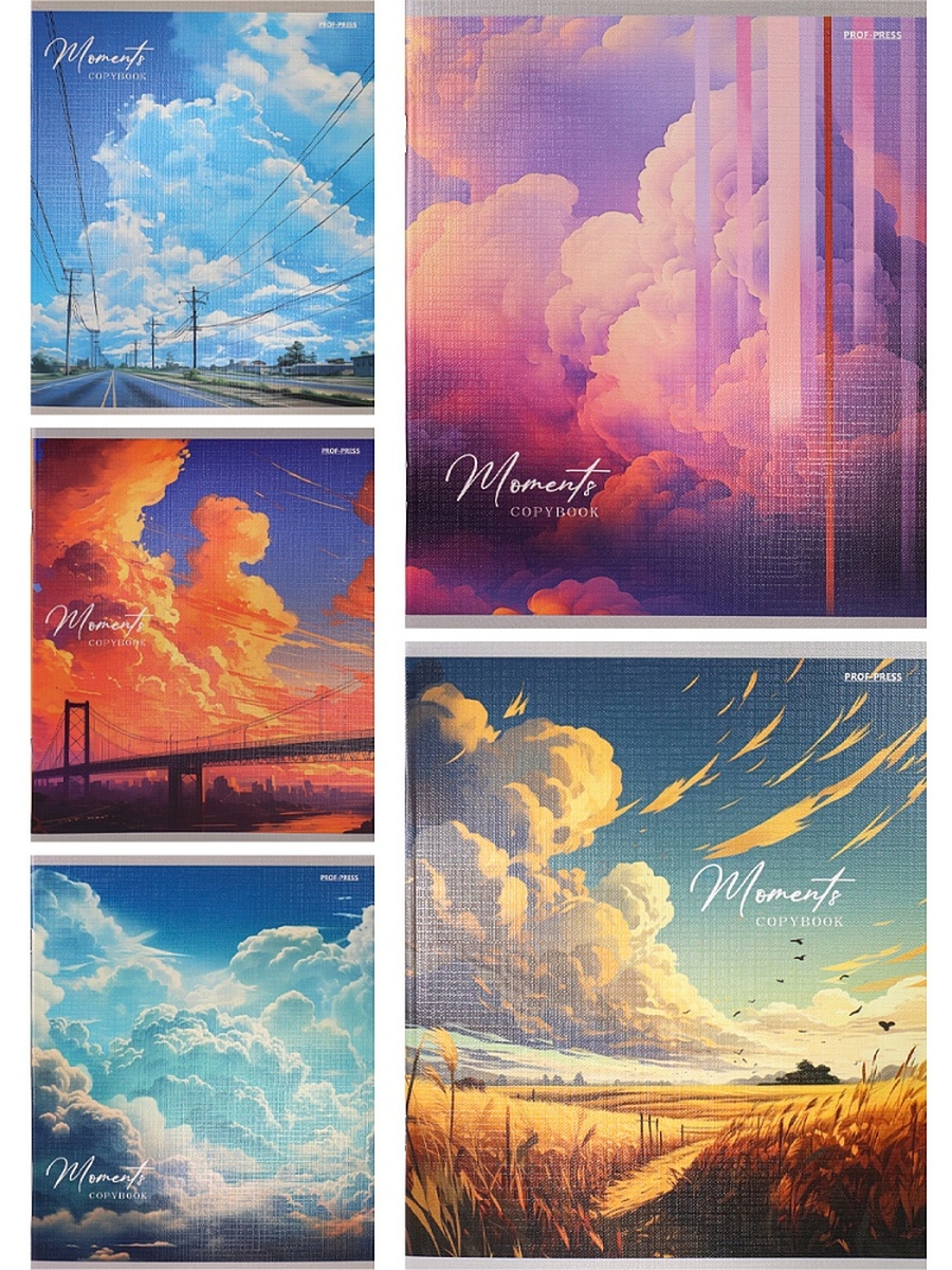 Тетрадь 48л Клетка ОБЛАЧНЫЙ ПЕЙЗАЖ лен 48-5137