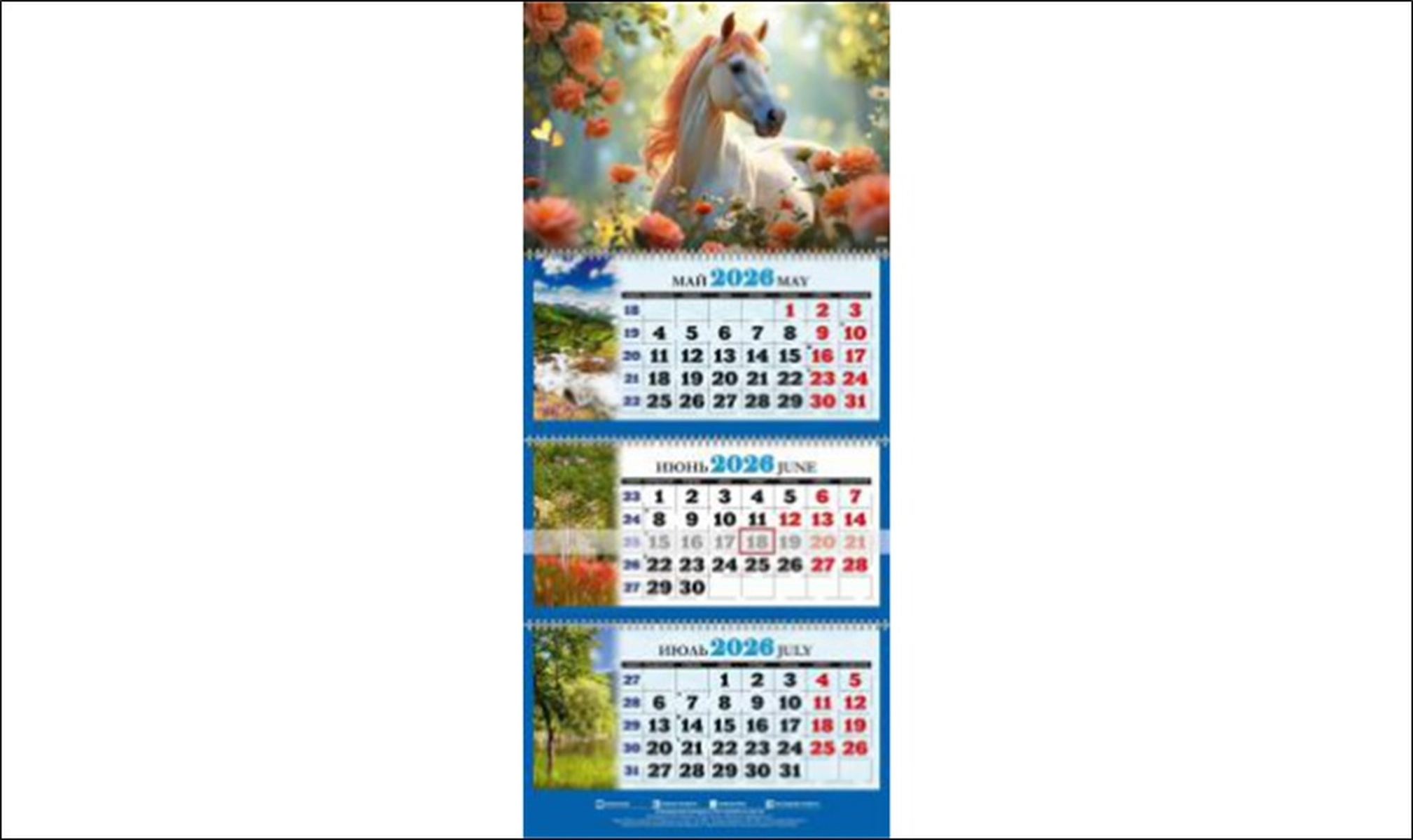 Кал 2026 Кварт 3-х блоч Символ года с бегунком 70х31(21х31) см КТ151
