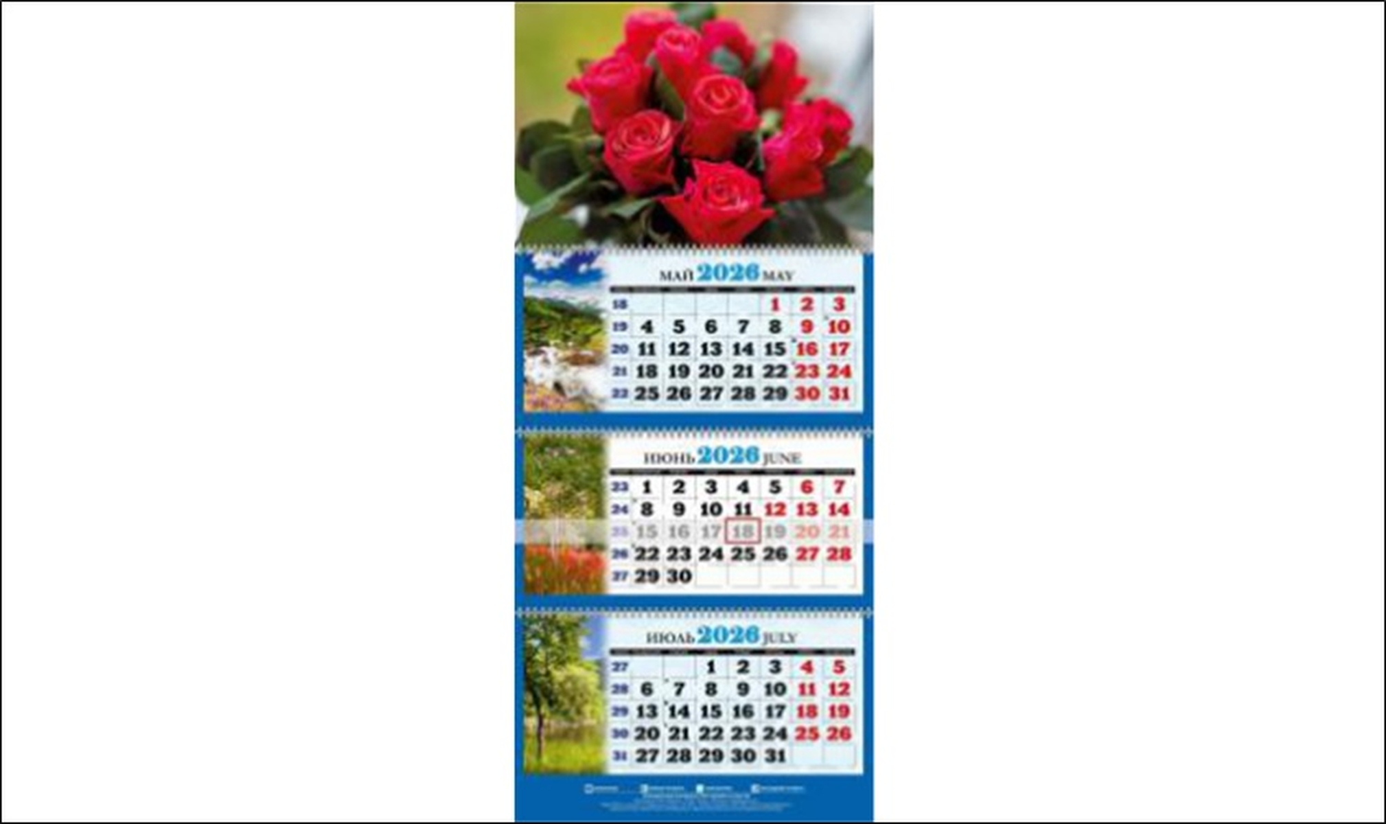 Кал 2026 Кварт 3-х блоч Розы с бегунком 70х31(21х31) см КТ144