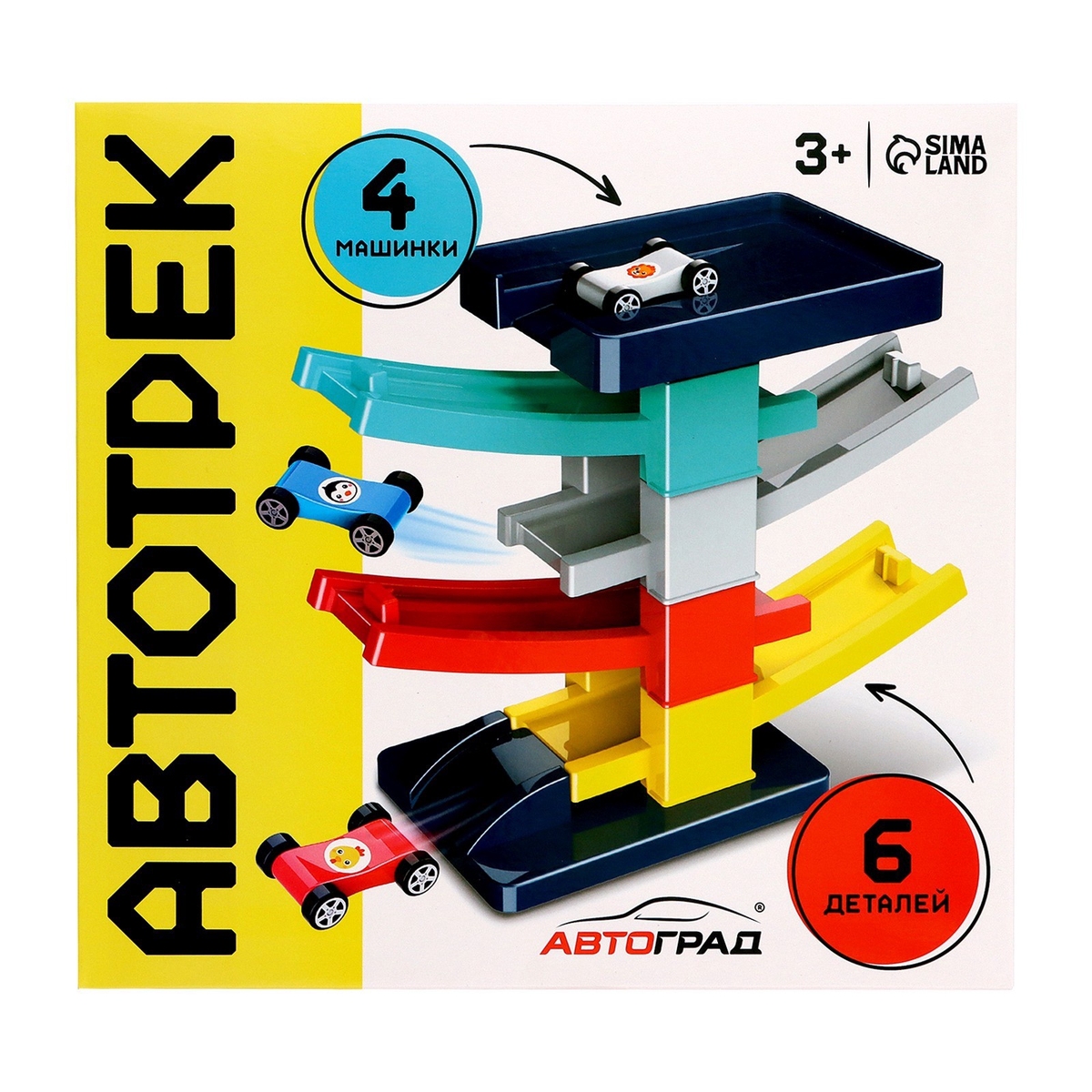 Хотите устроить зрелищные соревнования на скорость? С автотреком «Гонки по склону» ребёнок организует настоящий аттракцион! Скатывайте машинки с самого верхнего уровня и наблюдайте за их стремительным спуском. Особенности автотрека Конструкция состоит из 6 деталей, которые легко стыкуются между собой. В комплекте 4 машинки и наклейки с животными, чтобы украсить машинки и устраивать настоящие соревнования! Детали изготовлены из безопасного гипоаллергенного пластика. Не только увлекательно, но и полезно! Запуская машинки на треке, ребёнок потренирует пространственное и логическое мышление, познакомится с основными правилами дорожного движения и просто весело проведёт время. 6918402 Автотрек «Испытание скоростью» — это невероятно зрелищный аттракцион, полный драйва и приключений! Симметричная трасса создана для одновременного запуска двух машинок. Такая игра не оставит равнодушным ни одного любителя гонок! Особенности автотрека На крутых поворотах и спусках есть ограждения, чтобы машинки не соскальзывали с трассы. Есть 2 мёртвых петли и 2 спиральных спуска для крутых виражей. Детали трека легко стыкуются между собой. Длина трека — 145 см, ширина — 62 см, высота — 26 см. В комплект входит 2 машинки. Работают от 1 батарейки типоразмера ААА каждая. В комплект не входят. Все элементы автотрека выполнены из безопасного пластика.