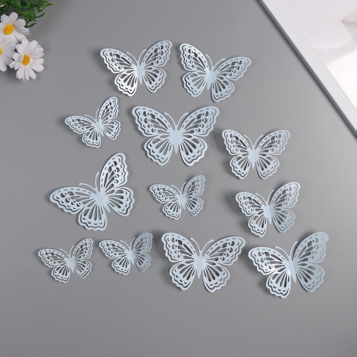 Наклейки бумага Бабочки с узорами матовый голубой 12 шт 10524252