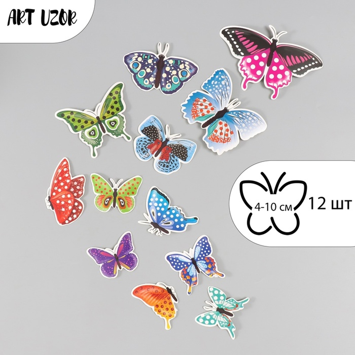 Набор наклеек Бабочки Горошек 12 шт 4-10 см 9668906