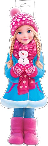 0-35-5042 Плакат фигурный Девочка со снеговичком