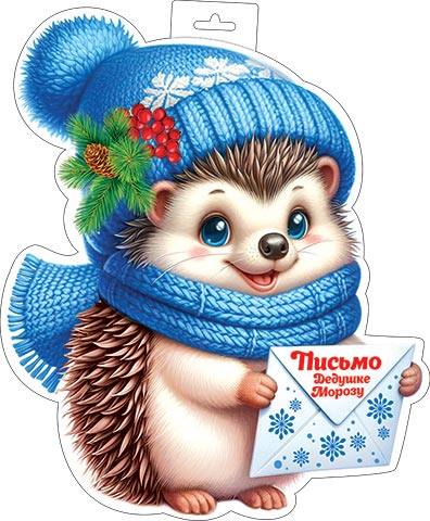 0-35-5045 Плакат фигурный Ежик с письмом к Деду морозу