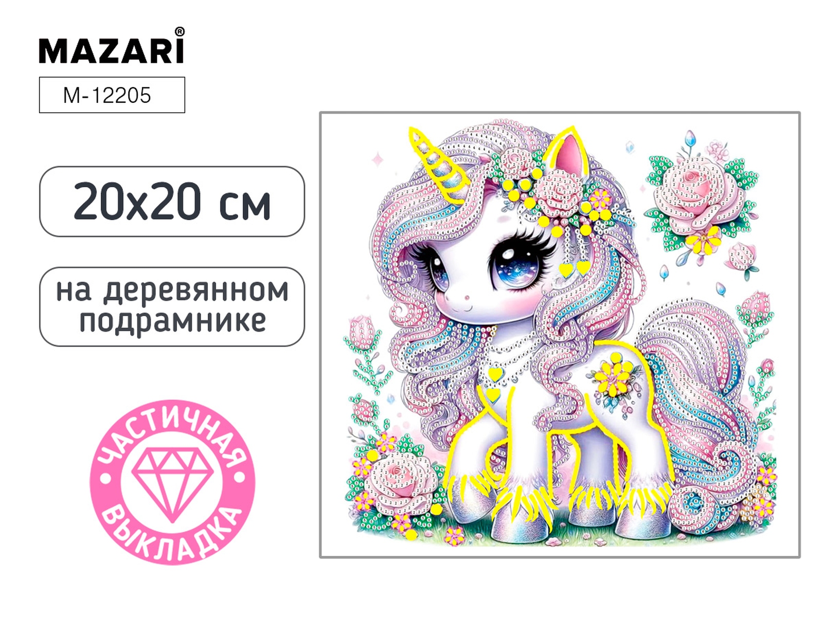 Алмазная мозаика Единорог 20х20 см частич выкладка на подрам M-12205