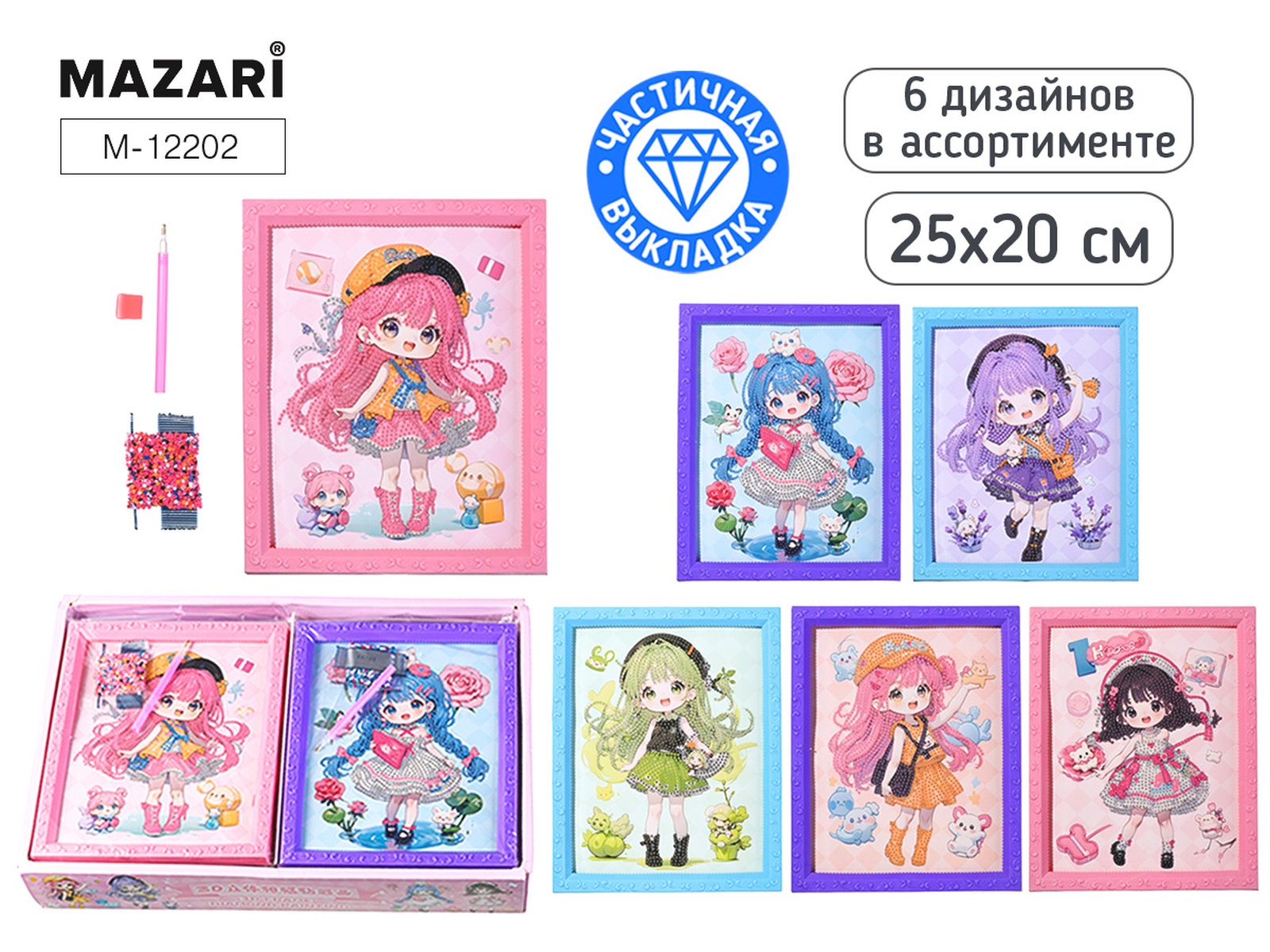 Алмазная мозаика Девочки 25х20 см частич выкладка 6 дизайнов в асс M-12202