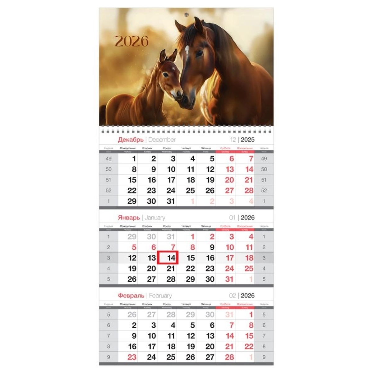 Кал 2026 Кварт 1 блоч Лошади на 1 гр 295*650 мм с бегунком 380916