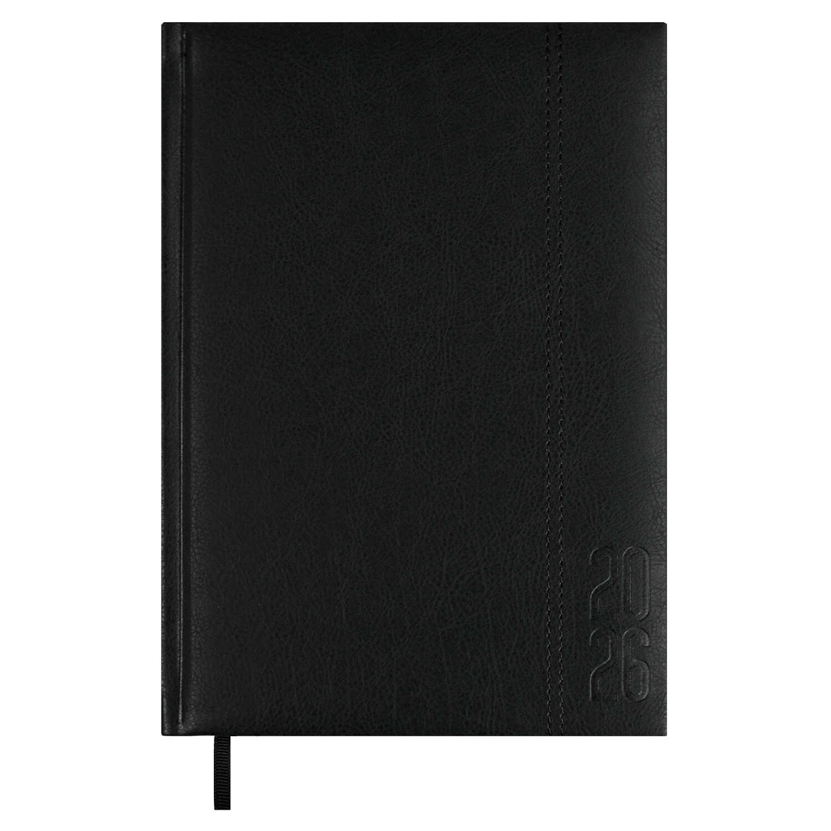 Ежедневник 176л датир А5 2026 НАППА ЧЁРНЫЙ кожзам 70224