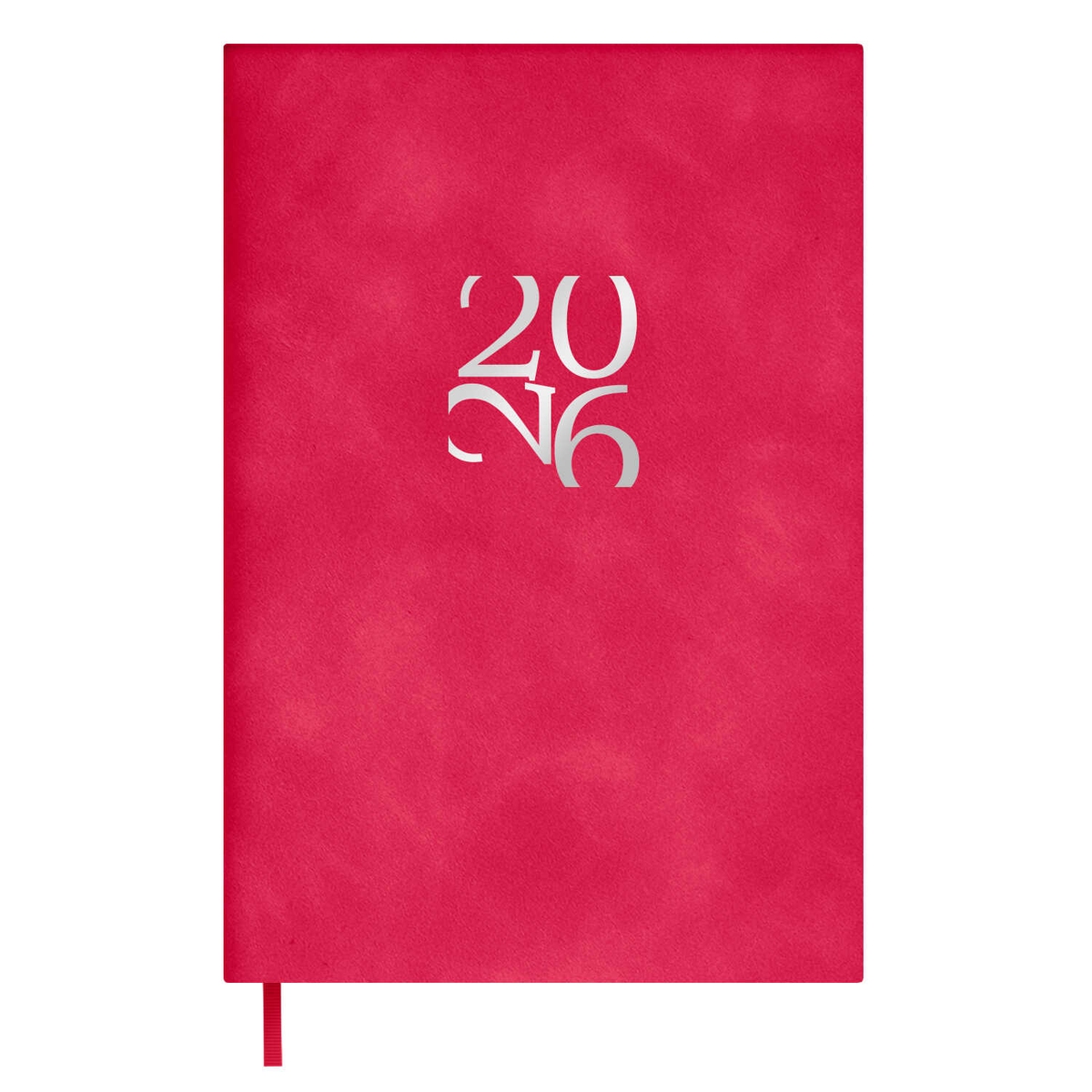 Ежедневник 120л датир А6 2026 БЕЙБИСКИН МАЛИНОВЫЙ кожзам 70316