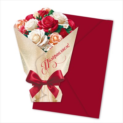 Открытка букет с конвертом Поздравляем жен 9.0001216