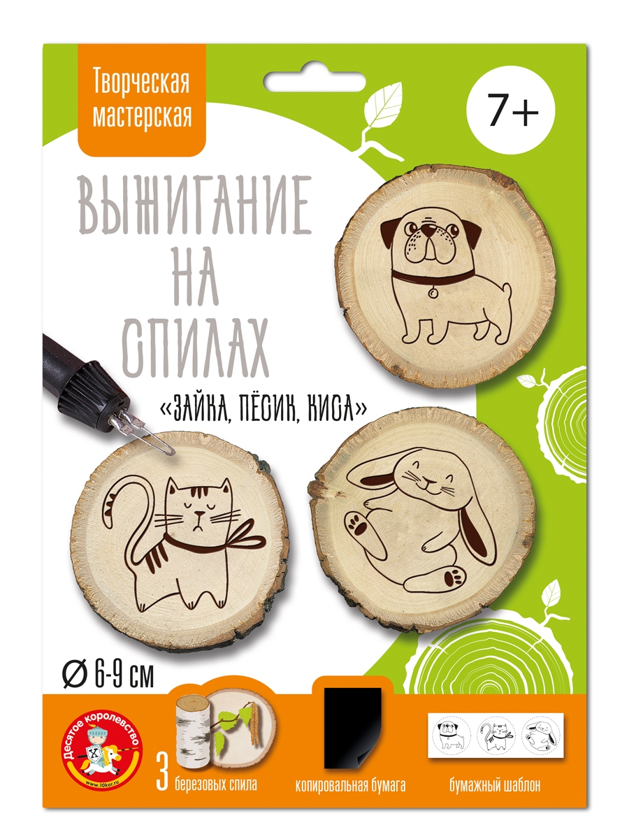 Выжигание на спилах Зайка Песик Киса малые 04801