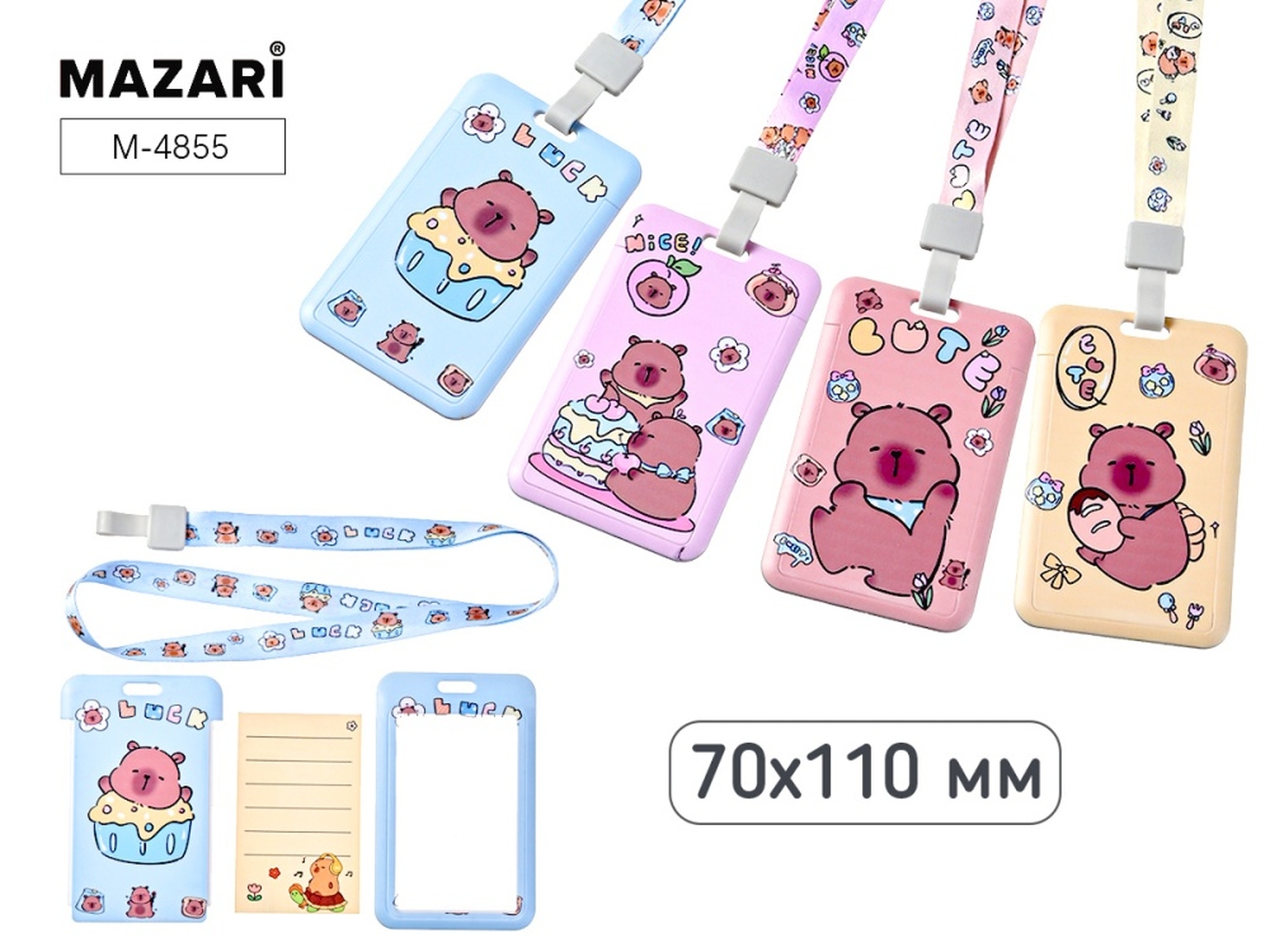 Бейдж вертикальный КАПИБАРА 70х110мм на шнурке микс 4 диз M-4855