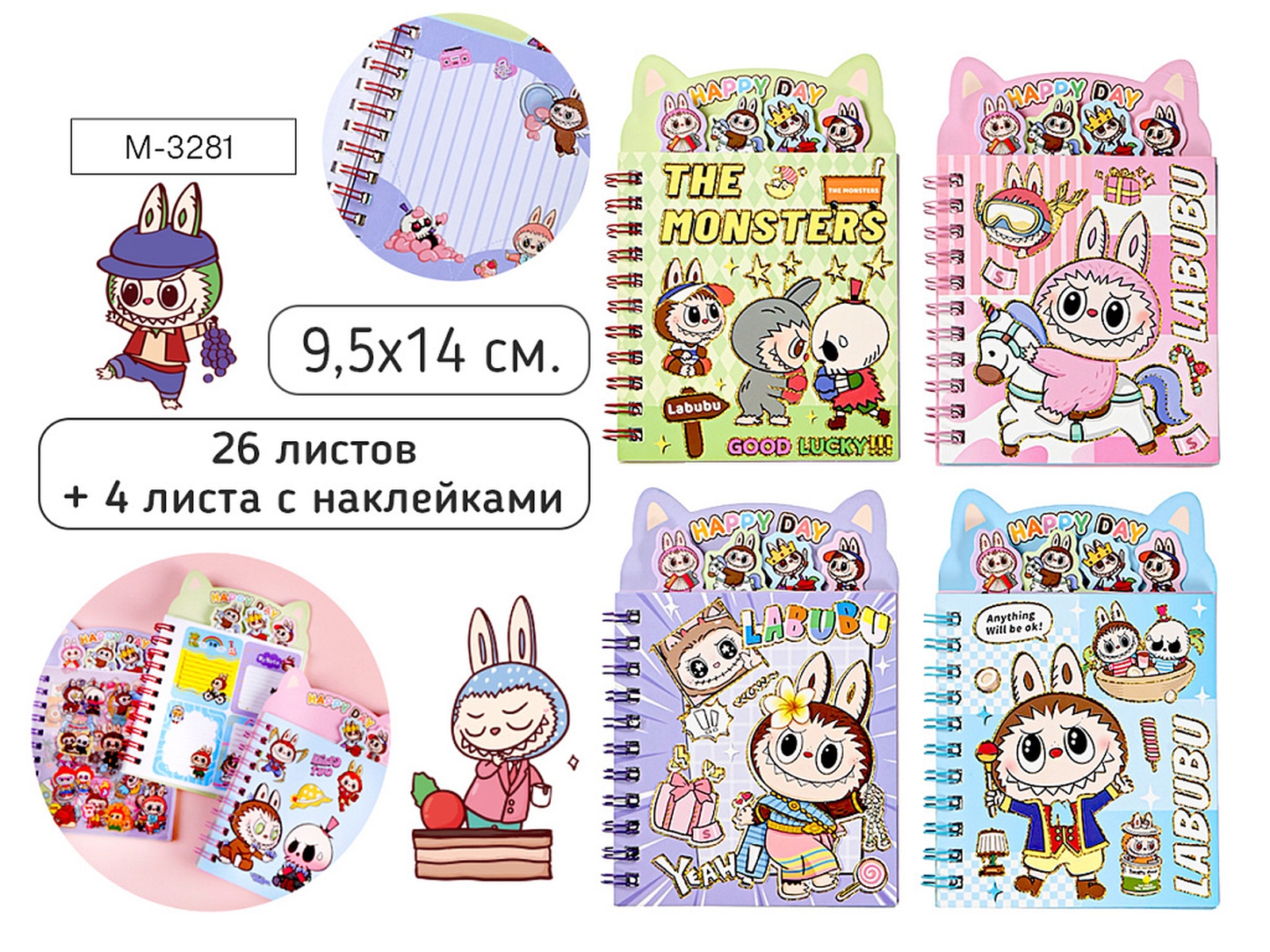 Блокнот на евроспирали ЗУБАСТИК 9.5х14 см 26л цв внутренний блок 4л с наклейками M-3281