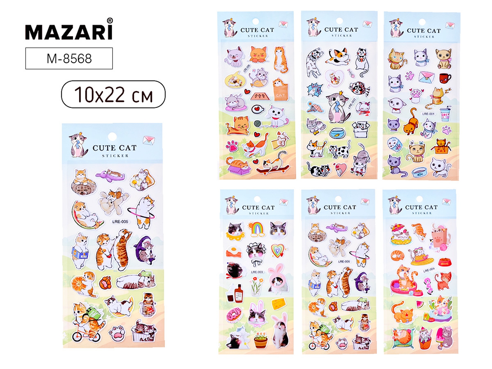 Наклейки декоративные КОТИКИ 6 дизайнов M-8568