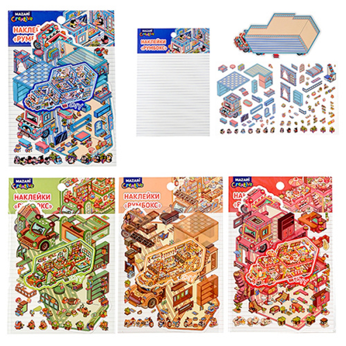 Наклейки РУМБОКС АВТОБУС 13.1*19,6 см 1 локация 2 листа с накл 4 дизайна в ассорт M-20512