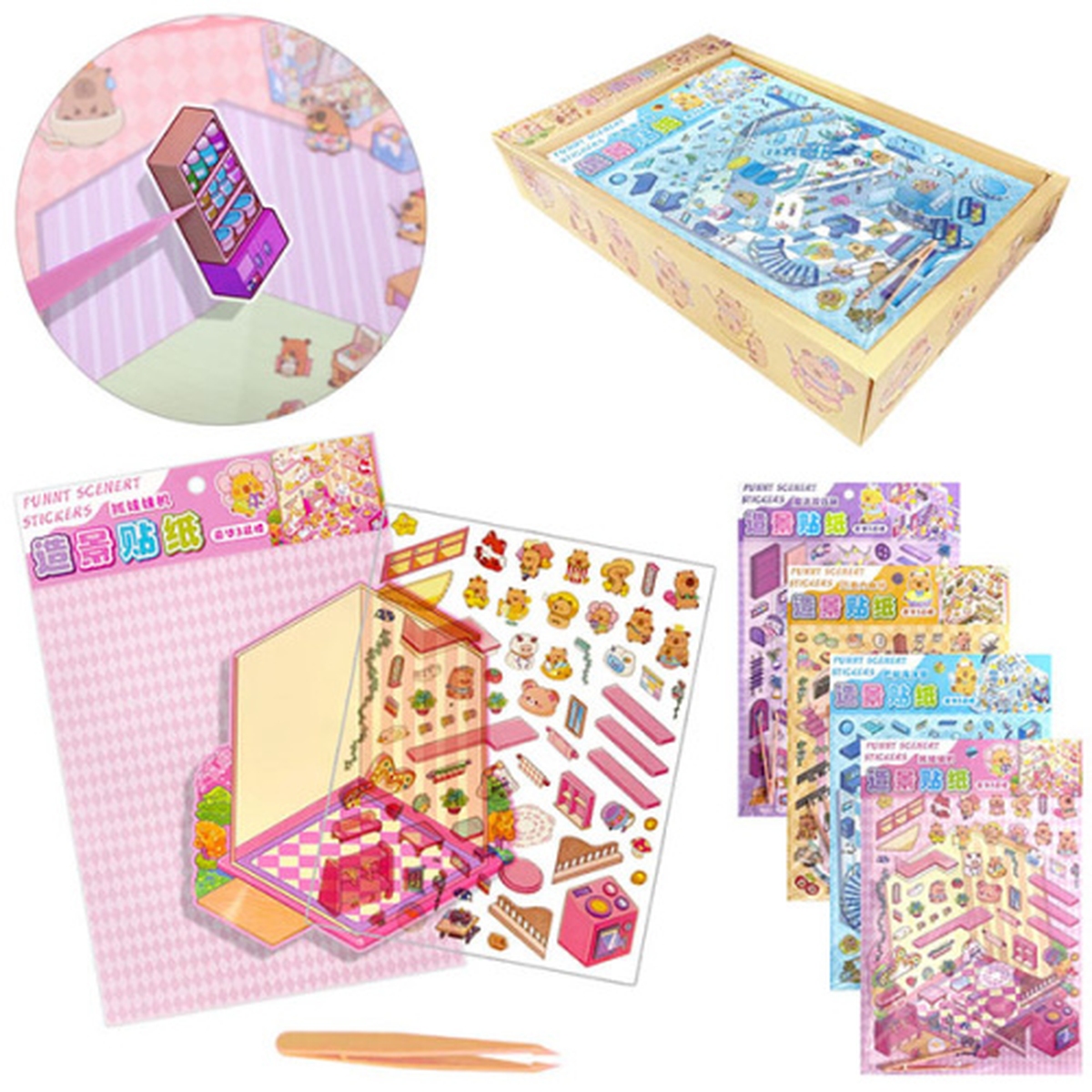 Наклейки РУМБОКС КАПИБАРА, 19*28 см, 1 локация, 1 лист с наклейками, пинцет в комплекте, 4 дизайна в