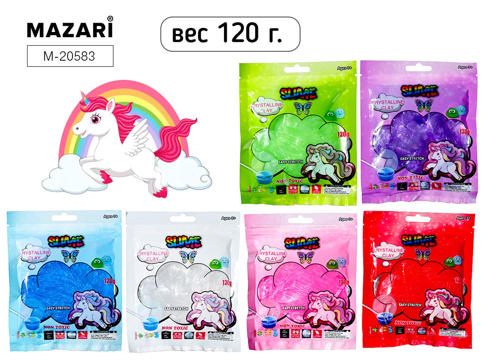 Слайм ЕДИНОРОГ 120 г зип пакет 6 цветов ассорти M-20583