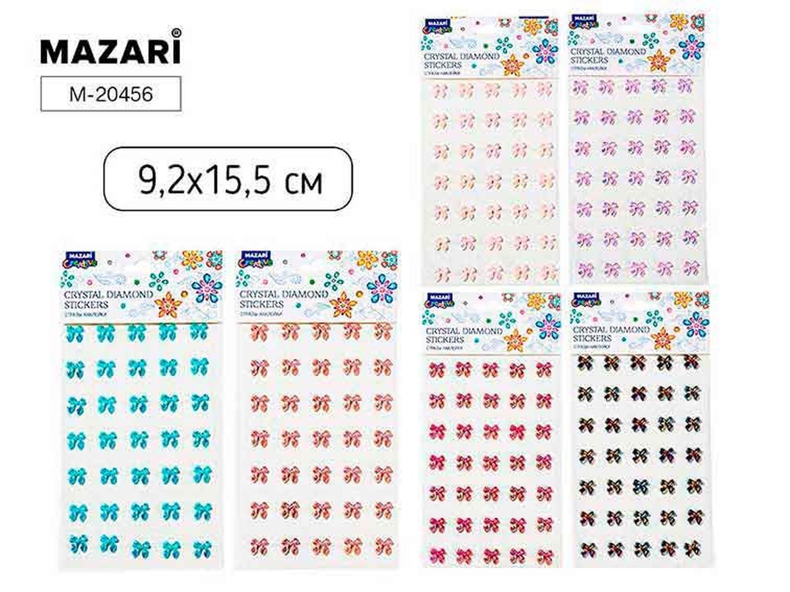 Стразы-наклейки пластиковые БАНТИКИ, 9.2*15.5 см, 6 дизайнов, ОПП-упаковка