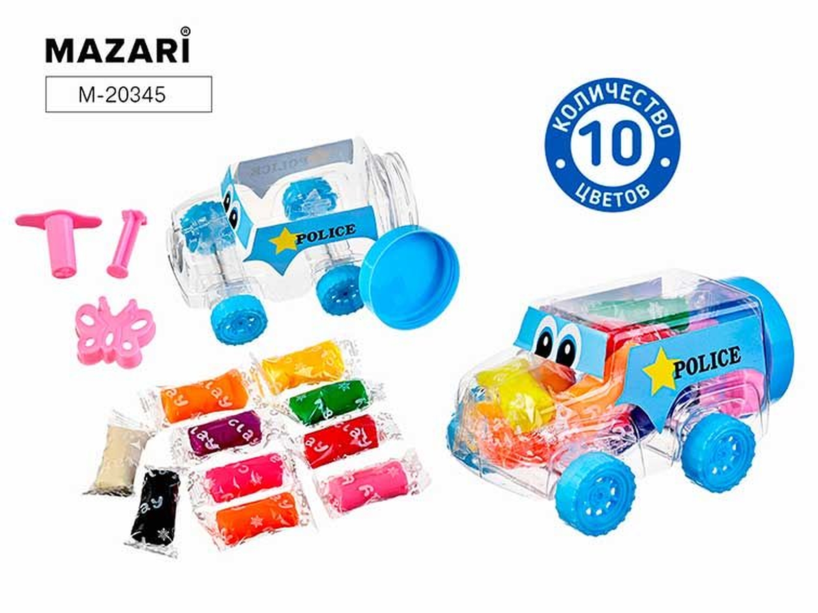 Тесто для лепки МАШИНКА 10 цветов M-20345