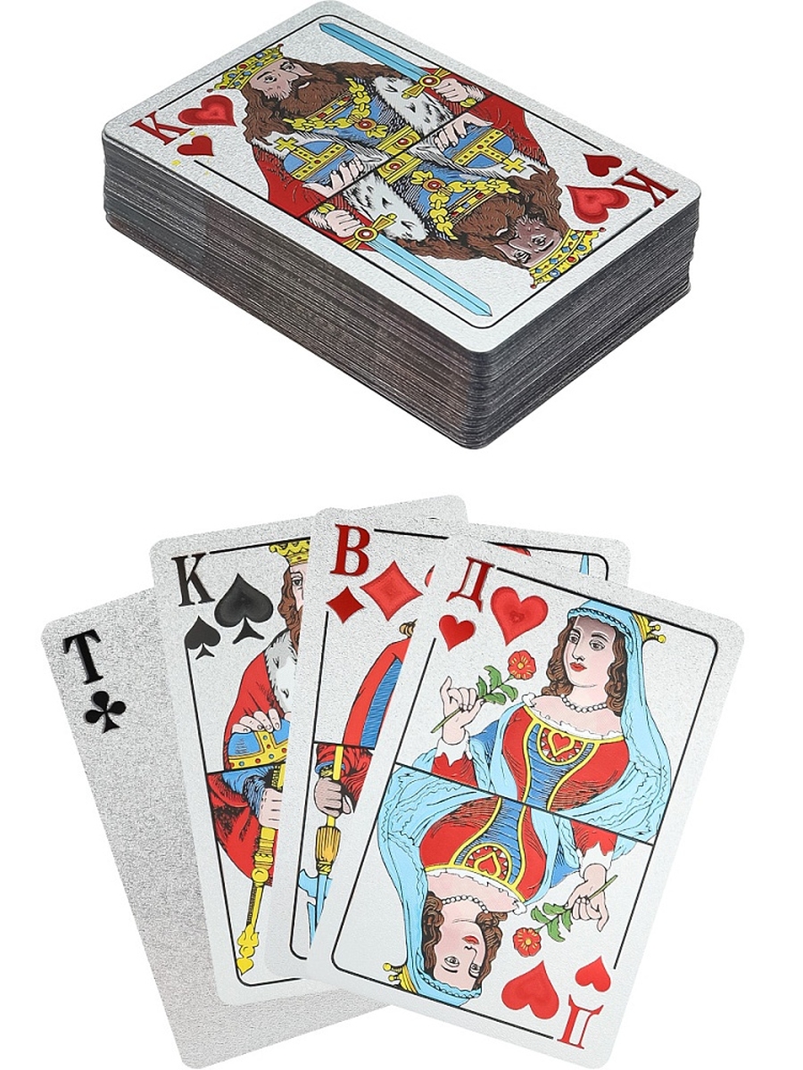 Карты игральные пластиковые "5000" 54 шт серебристые ИНК-0129