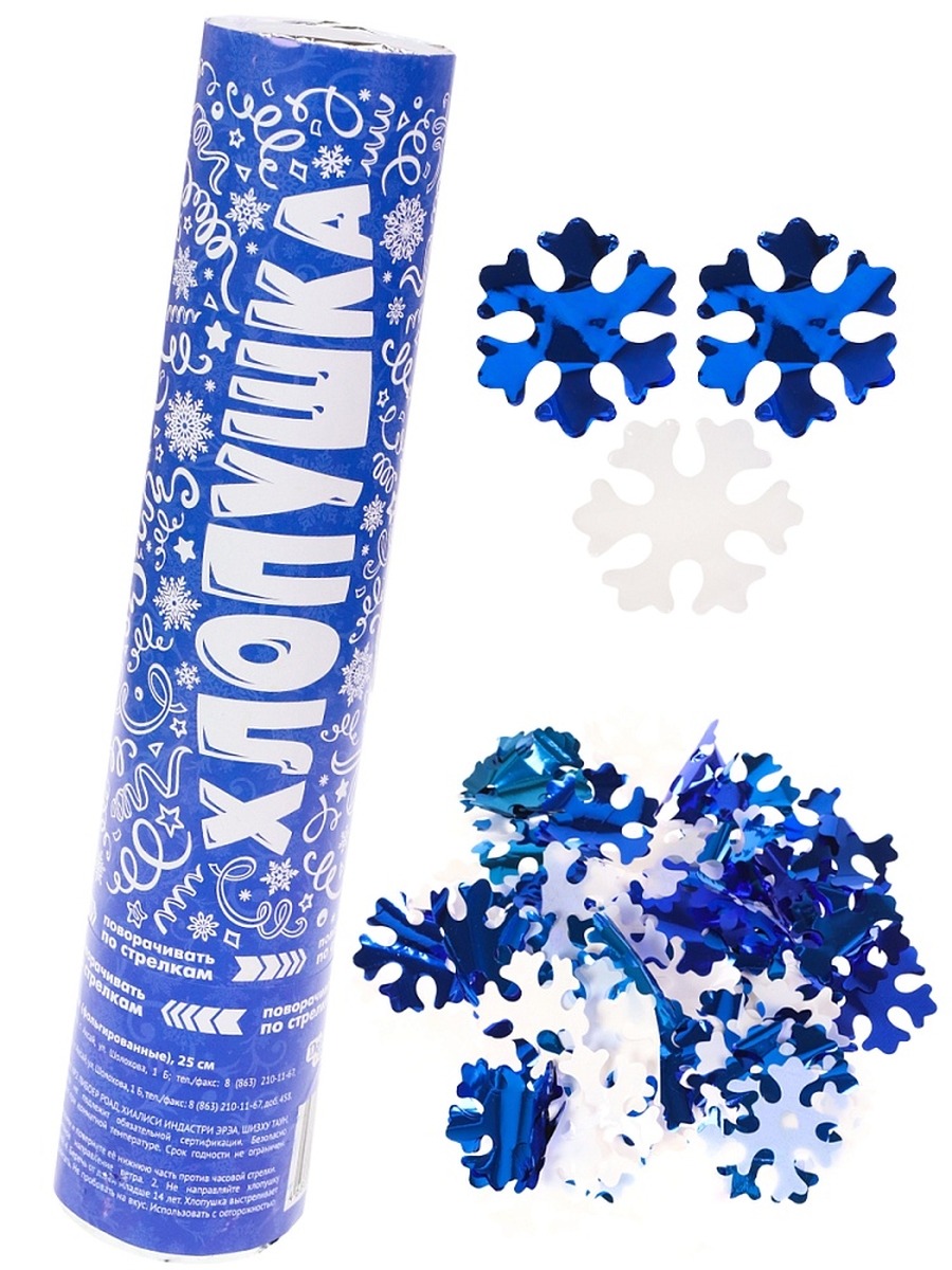 Хлопушка Новогодняя Снежинки микс фольгированные 25 см Х-8919