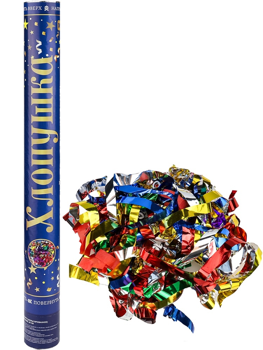 Хлопушка пневматическая Ассорти фольг и серпантин фольг 50 см Х-2943