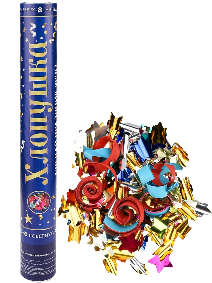 Хлопушка пневматическая Звезды фольг и серпантин бумаж 40 см Х-2941