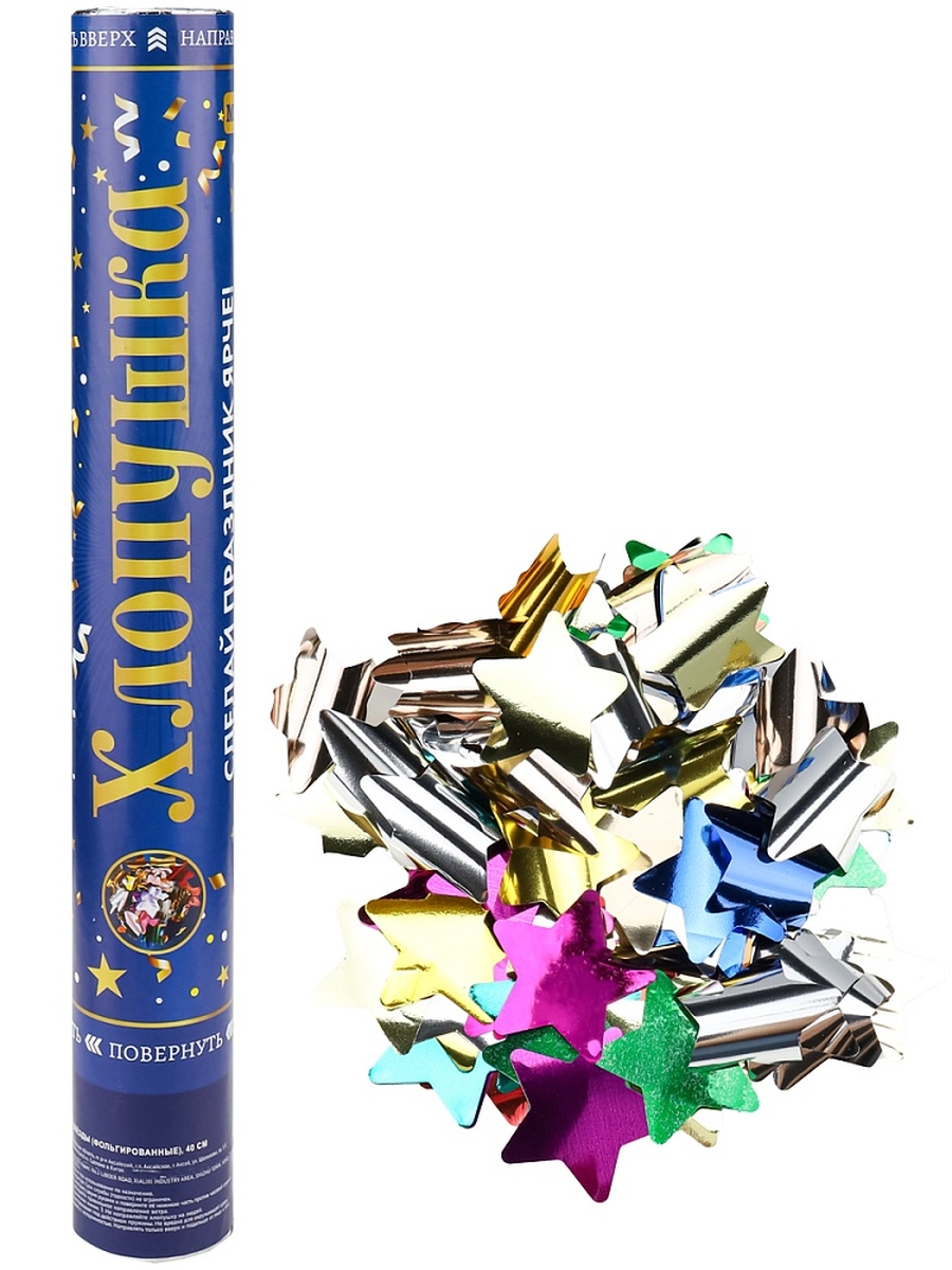 Хлопушка пневматическая Звезды фольга 40 см Х-2940