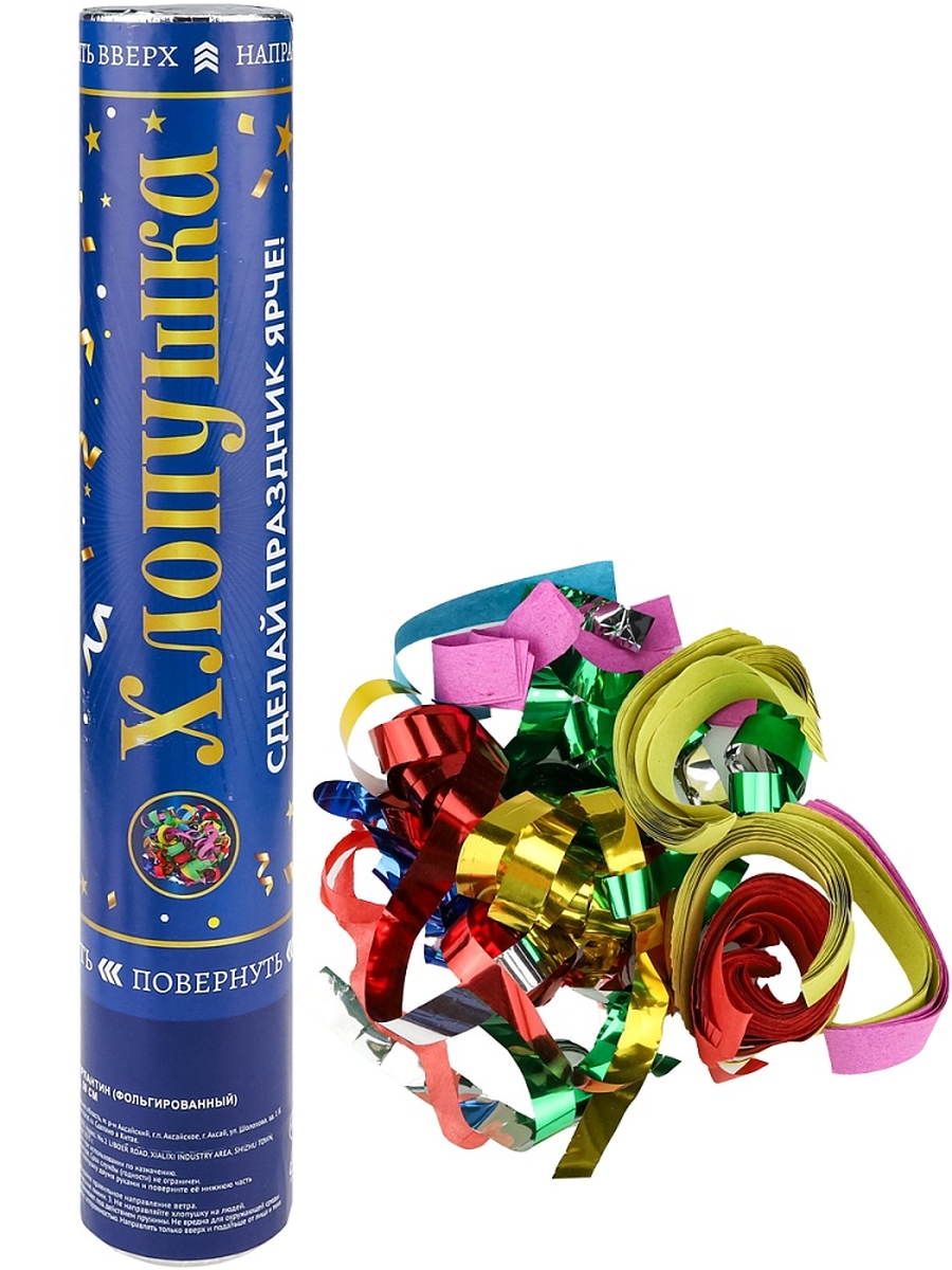 Хлопушка пневматическая Серпантин фольг и серпантин бумаж 30 см Х-2887