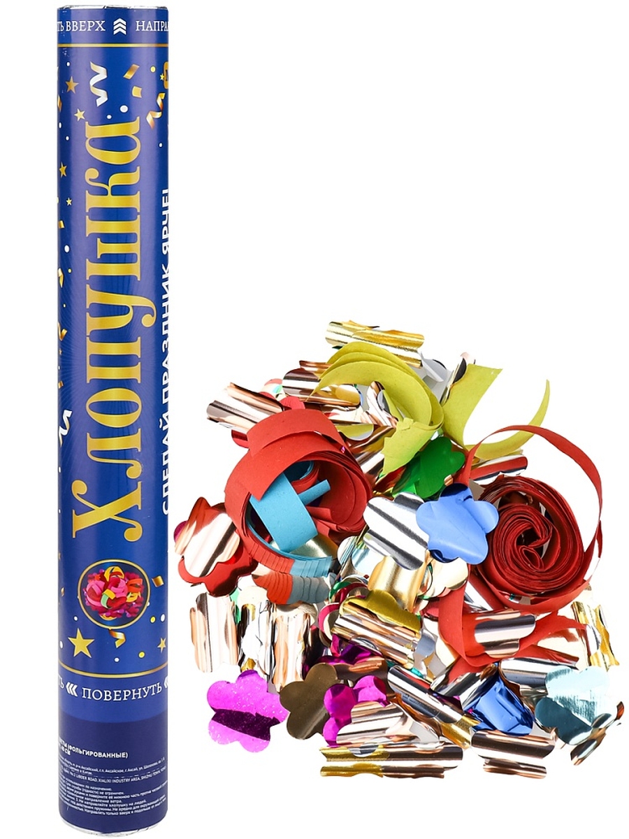 Хлопушка пневматическая Цветы фольг и серпантин 40 см Х-2942
