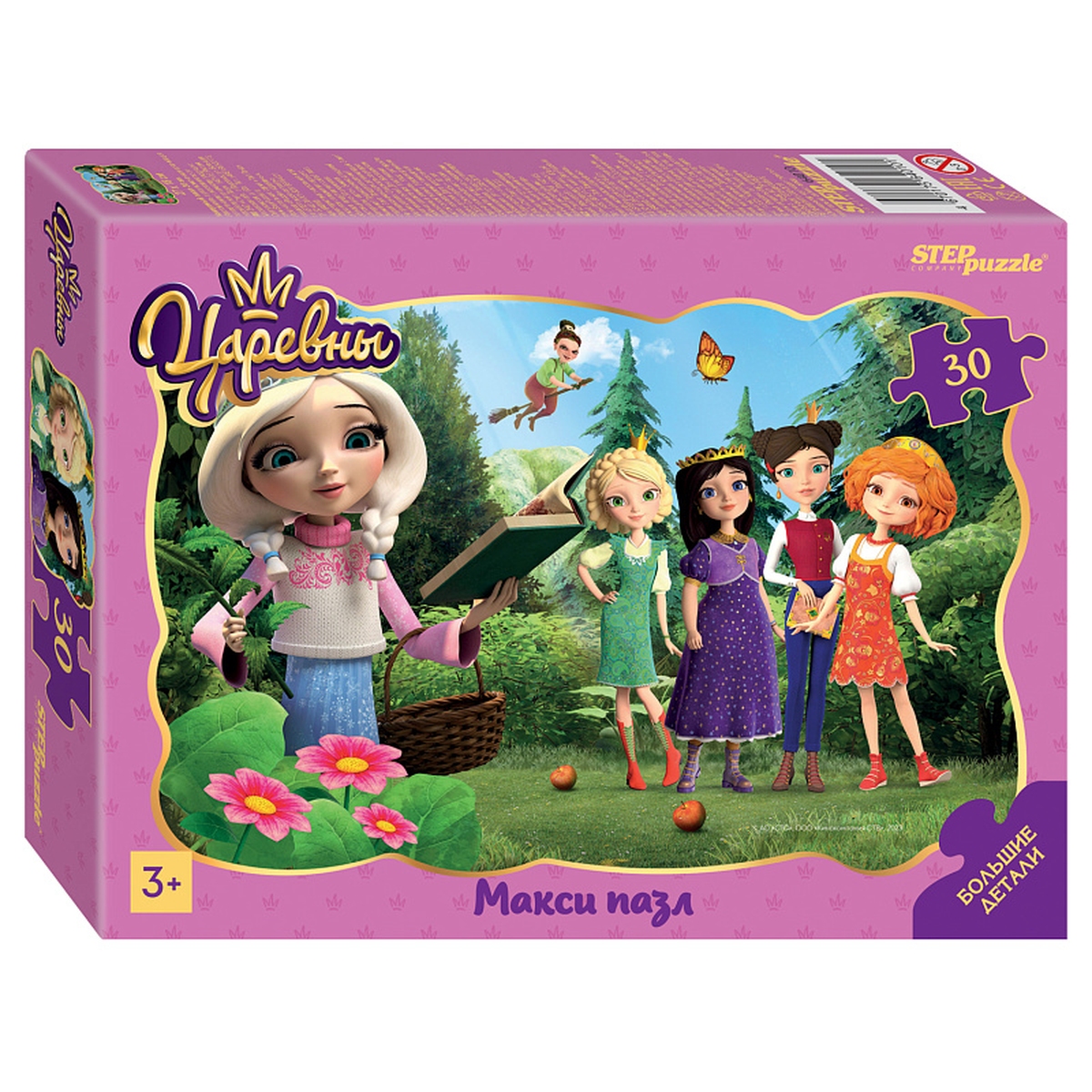 Контурный макси пазл «Царевны» c героями одноименного мультфильма. Фигурный пазл с крупными деталями эргономичен для детской руки. Развивает внимание и память. Тренирует мелкую моторику. Характеристики пазла: крупные детали пазла ≈ 5×4,5 см; размер собранного изображения – 27х18 см; материал – картон; качественное изображение; фигурная рамка; экологически чистые, нетоксичные материалы (компания Step Puzzle гарантирует высокое качество пазла и точность подгонки).