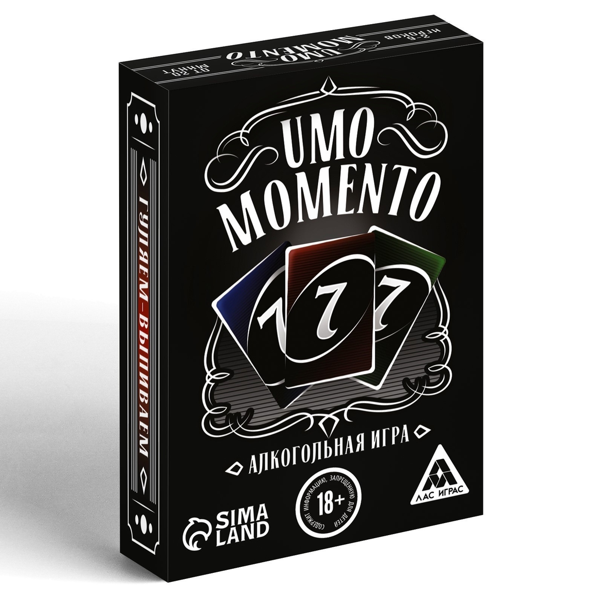 Настольная игра для вечеринки В чём секрет отличной игры? Крутое настроение, легкие правила и быстрая победа! И, конечно же, много шума и смеха. Перед вами как раз такая игра. Выкладывайте карточки с руки, если они совпадают по цифре или цвету, и постарайтесь быстрее всех избавиться от карт. Вас ждет много алкоголя и улётных заданий! Как играть? Каждый в свой ход выкладывает в колоду Сброса по одной карте из тех, что имеются у него на руках, по следующим правилам: Карта должна быть того же цвета, что и верхняя карта из колоды Сброса. Карта должна иметь ту же цифру или картинку, что и верхняя карта из колоды Сброса. Или можно выложить сумасшедшую карту. Такие карты не подразделяются по цветам, поэтому могут быть выложены на карту любого цвета. Если у вас на руках оказалась бонусная карта, абсолютно одинаковая с той, что лежит сверху в колоде Сброса, вы можете выложить её, не дожидаясь своего хода. Участник, у которого не останется карт на руках (и при этом он не забудет прокричать «Гуляем-выпиваем», когда будет выкладывать последнюю карту), выигрывает в первом туре! Если участник забыл крикнуть, то он вытягивает 3 карты, и игра продолжается. После этого вы можете разыграть второй и третий раунды. И так, пока не закончится весь алкоголь на столе! Состав: 70 карт, правила игры.