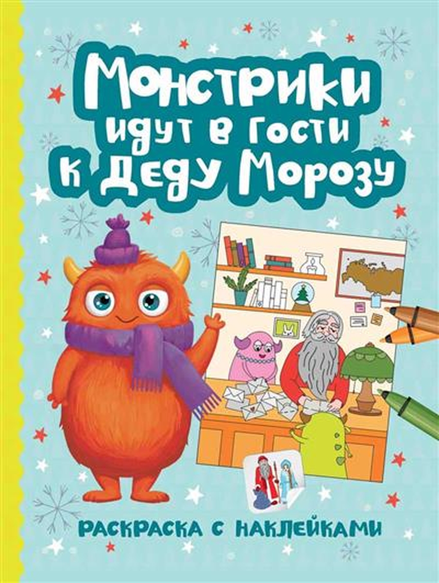Монстрики идут в гости к Деду Морозу книжка раскраска с наклейками