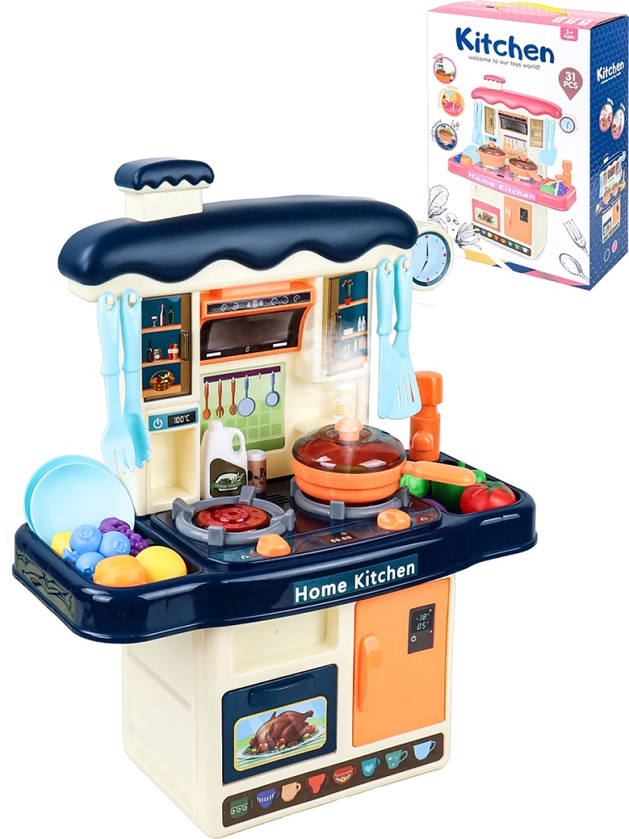Игровой модуль Кухня 43*15*35см 32 предмета свет звук пар вода на бат синий FCJ0887039