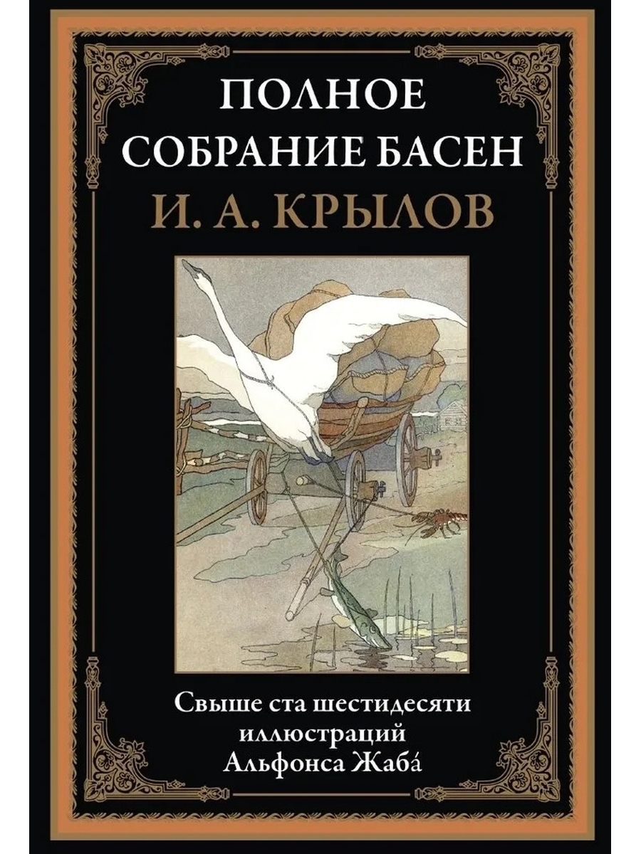 Благодаря своим басням И. А. Крылов еще при жизни снискал славу классика русской литературы. Удачно найденная литературная форма басни позволила ему преодолеть первые неудачные стихотворные опыты и в полной мере проявить свои таланты сочинителя. Басни Крылова до сих пор привлекают слушателей афористичной сжатостью сюжета, яркими образами и колоритным языком. Не случайно многие его строчки стали пословицами и крылатыми выражениями. Крылов начинал с переводов Лафонтена, однако вскоре стал автором собственных ярких сюжетов. Простота истории, остроумные подробности, яркий, образный стих привлекали к его басням самых разных слушателей. Одни видели в его баснях лишь забавный анекдот с немудреной моралью, другие искали перекличку с событиями свой эпохи. Любопытно, что при жизни Иван Андреевич был популярнее таких своих знаменитых современников как Пушкин и Гоголь. Вопреки расхожей славе легкого сочинителя, Крылов тщательно работал над каждой своей басней, многократно переписывая и изменяя ее текст. В результате появлялись маленькие шедевры, которыми мы восхищаемся до сих пор. Иллюстрации в этой книге выполнил замечательный художник Альфонс Константинович Жаба́. В историю живописи он вошел как талантливый акварелист, баталист и мастер пейзажа. В 1909 году, вскоре после окончания Петербургской академии художеств, он принял участие в гидрографической экспедиции на Кольский полуостров. В результате появилась серия картин Крайнего Севера; эти работы привлекли к себе внимание публики. Позже художник стал автором серии акварелей «Бахчисарай», а также картин на темы армии и флота. Тем интереснее рассматривать его иллюстрации в данном сборнике. Их четкие контурные линии, лаконичность композиции и сдержанность цветовой гаммы прекрасно подходят к афористичной форме басен Крылова. Жаба́ скончался в 1942 году в блокадном Ленинграде и был похоронен на Серафимовском кладбище. Издание включает все басни, эпиграммы и стихотворения И. А. Крылова; впервые они были опубликованы в Полном собрании его сочинений, выпущенном издательством «Просвещение» в 1905 году. Сборник дополнен примечаниями к басням, заметкой о несбывшихся творческих замыслах поэта; приводится полный список его басен в хронологическом порядке. Издание проиллюстрировано рисунками великолепного русского художника Альфонса Константиновича Жаба.