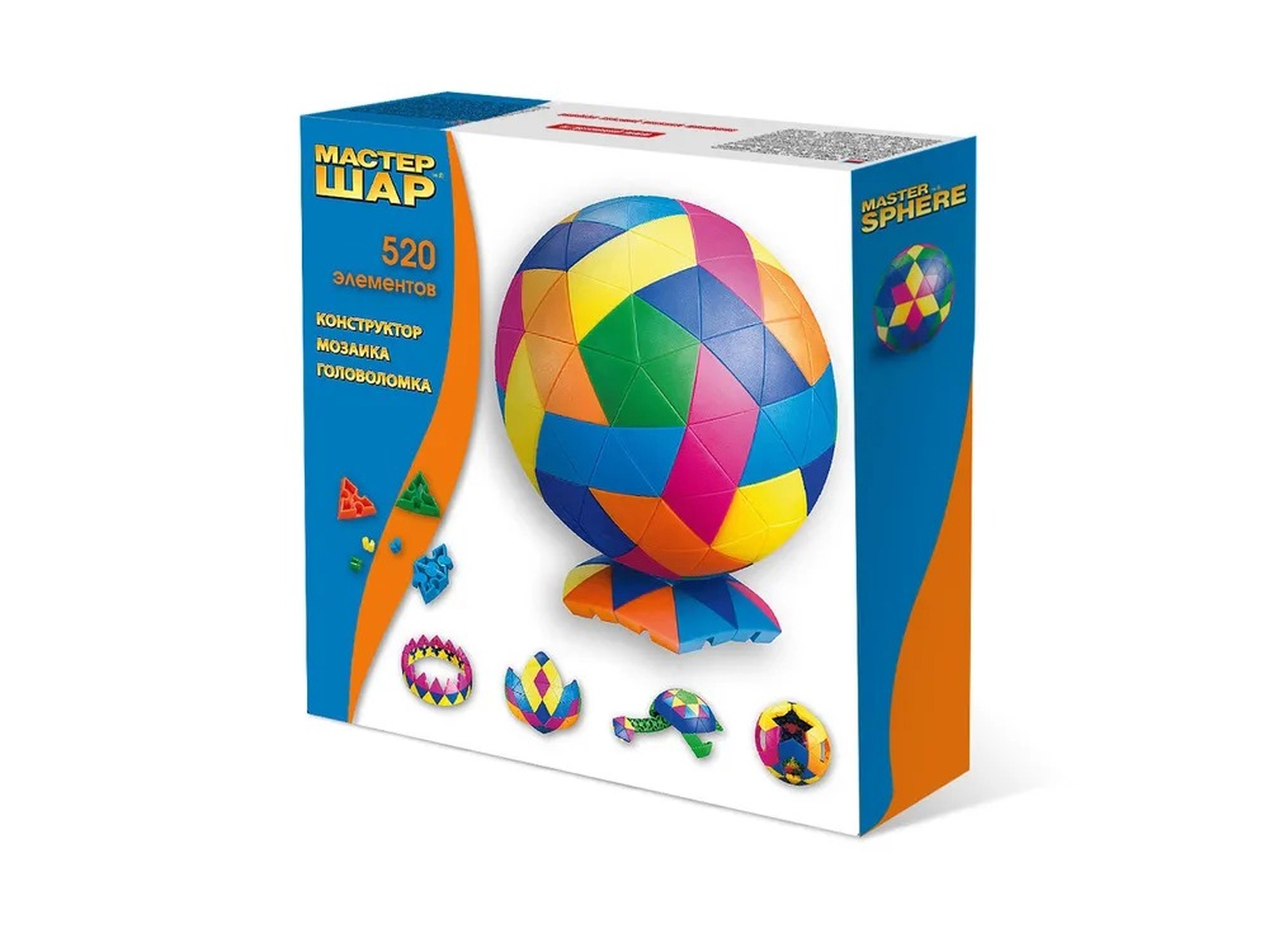 Мастер шар - очень интересный и оригинальный конструктор, не имеющий аналогов. Основное предназначение - собирать шары, красивые, симметричные, тяжелые, нарядные. Ставить их на подставочку на свой рабочий стол и любоваться несколько дней. А потом разбирать старый вариант и собирать новый. И так до бесконечности. Бросать и ронять такой шар конечно же не рекомендуется. Самое сложное в сборке шара - вставить последний кусочек. Нужна ловкость рук, смекалка и дополнительные приспособления. Помимо шара из конструктора можно собирать интересные сюжетные фигурки и разыгрывать с ними сценки (фигурки крепкие, не рассыпаются). Крепления из набора иногда имеют свойство ломаться, но производитель положил их настолько с запасом, что это совсем не страшно, по крайней мере пока. 3D-конструктор "Мастер шар" состоит из 520 деталей треугольной формы, из которых можно собрать объемный пазл. Элементы головоломки легко и прочно соединяются друг с другом, складываясь в разноцветную сферу на подставке. Кропотливый, но увлекательный процесс можно будет повторить неоднократно, стоит только разрушить готовое изделие.